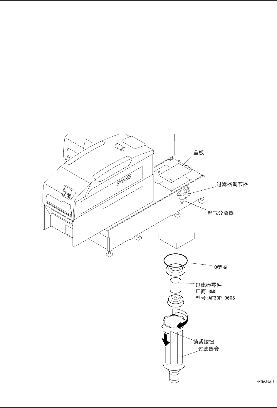 7. 使用压缩空气吹气清扫过滤器外壳,污垢严重时,请更换新的部品。