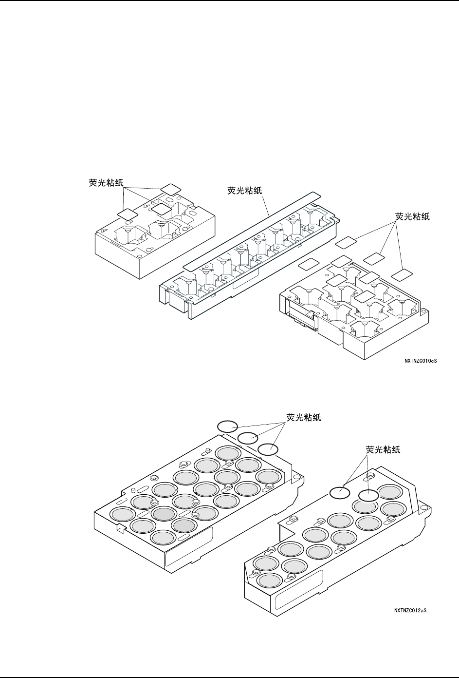 7. 消耗品的更换 QD029-09 262 NXT 机械手册 7.8 吸嘴置放台萤光粘纸 7.8.1 更换时期 在确认有无吸嘴中发生错误时。 7.8.2 更换方法 参考 「5.8 吸嘴置放台的拆除 / 安装」 ,将吸嘴置放台从吸嘴更换器 上拆下。请根据 不同型 号按下述步骤,贴换萤光粘纸。 <H01 类型 > 请直接贴换荧光粘纸。 <H04 类型 > 请直接贴换荧光粘纸。