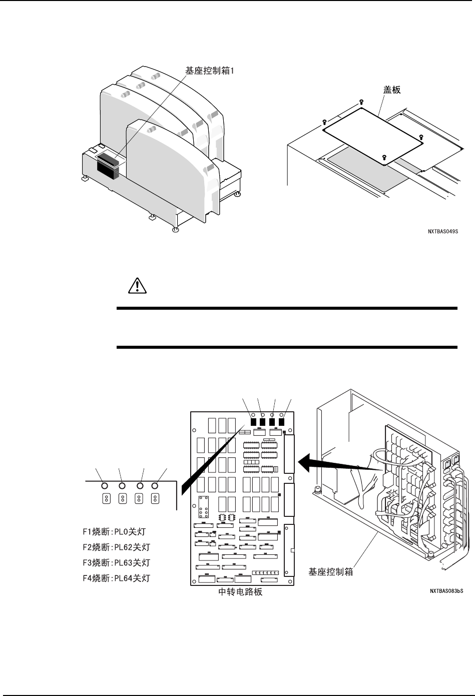 3. 从基座控制箱的 I/F 路板上拔下保险丝 (F1, F2, F3, F4) 进行更换。