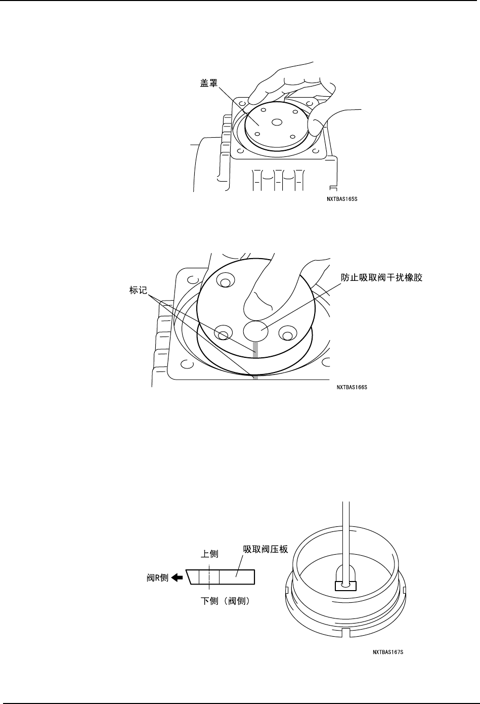 a. 在气缸上放置排气阀。将吸气阀备份以及排气阀压板重叠。