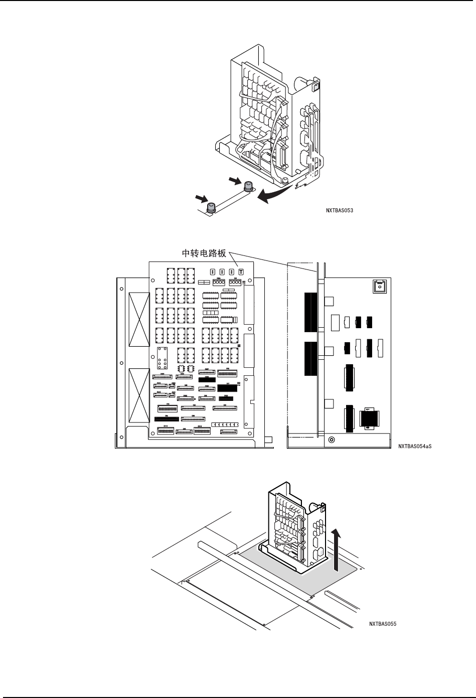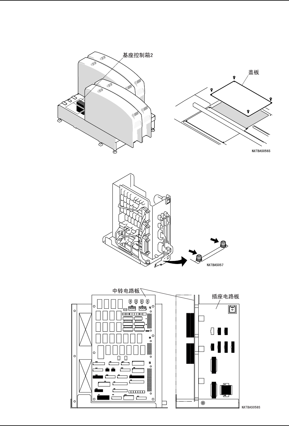 QD029-09 8. 部件的更换 NXT 机械手册 339 3. 拆除固定控制箱的螺栓 (2 根 )。 4. 拆除■所显示部分的插头。 5. 从基座中取出控制箱。 6. 以拆除新的控制箱的相反的步骤安装模组 主体。