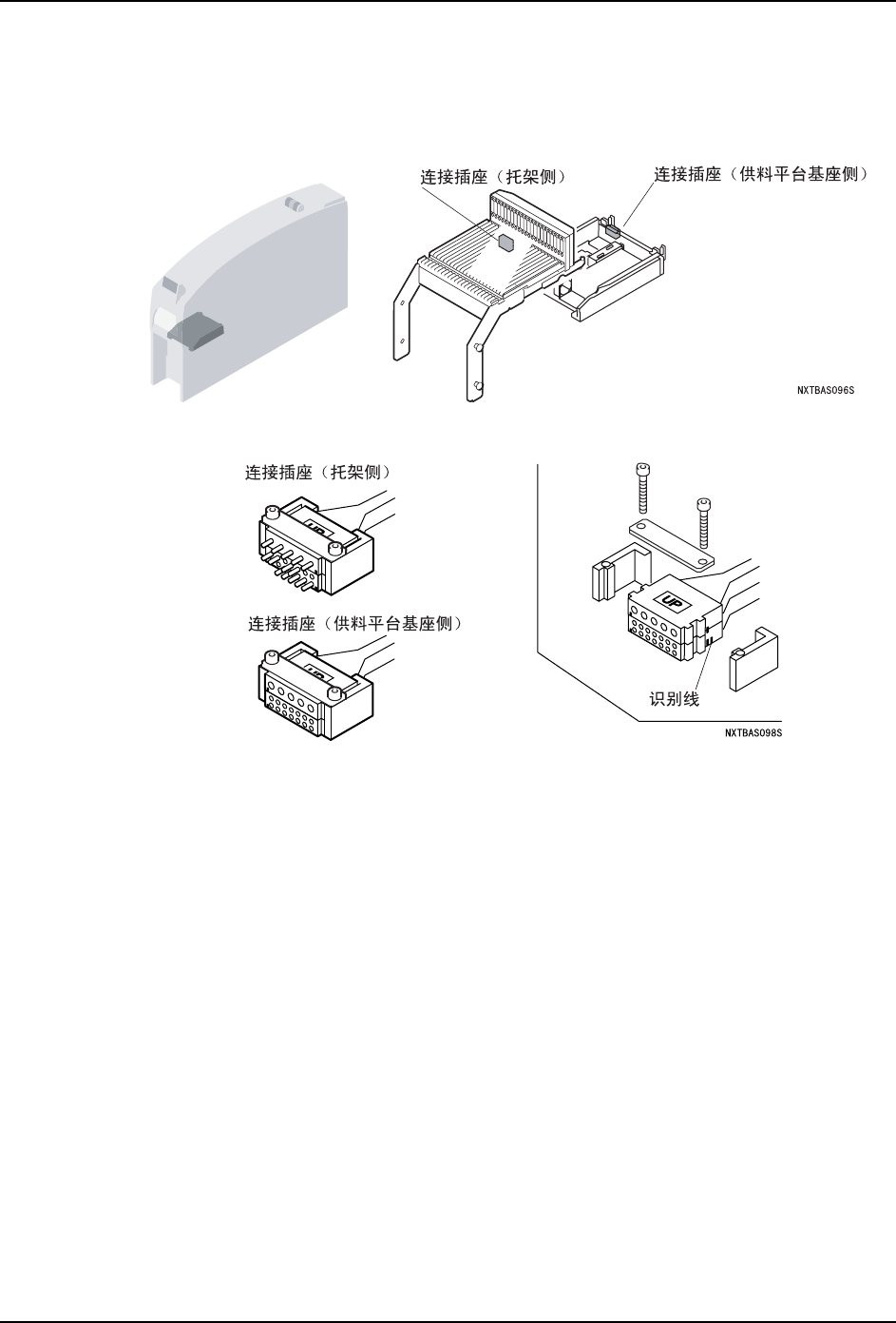 8. 部件的更换 QD029-09 370 NXT 机械手册 8.16.2 M3(S) 模组的时候 1. 将主电源开关 OFF,切断机 器的电源。 2. 在托架和托架基座上的图示位置上有用 于布线的组合插座。 3. 万一产生有必要拆除插座而分解插座后 ,在复原时请对齐侧面的识别线装上 插座。