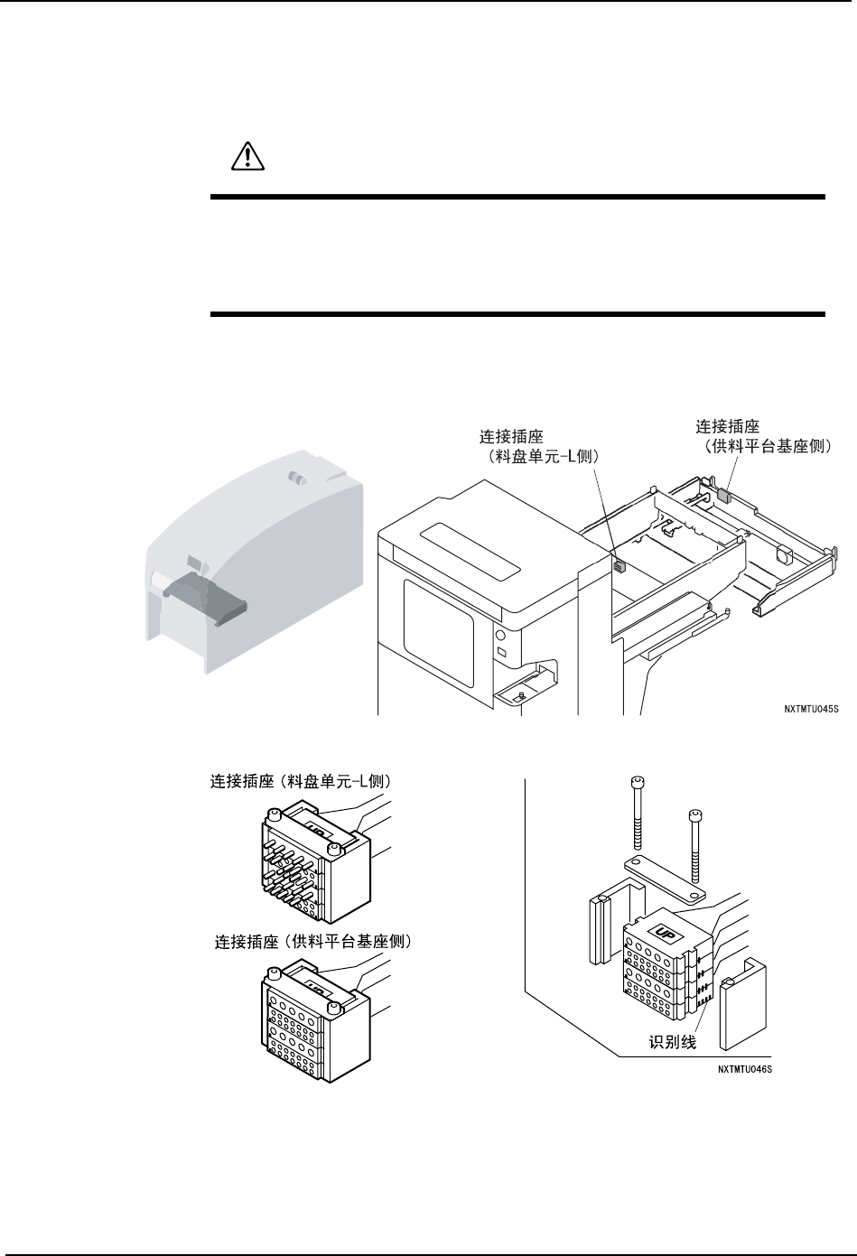 2. 在料盘单元 -L 和供料托架基座上的图示位置上有用于布线的组合插座。