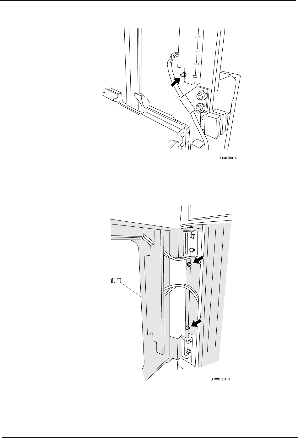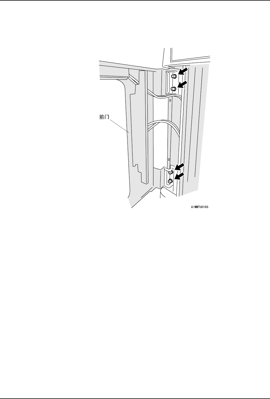 b. 拆除前门铰接部的固定螺栓 (4 根)。