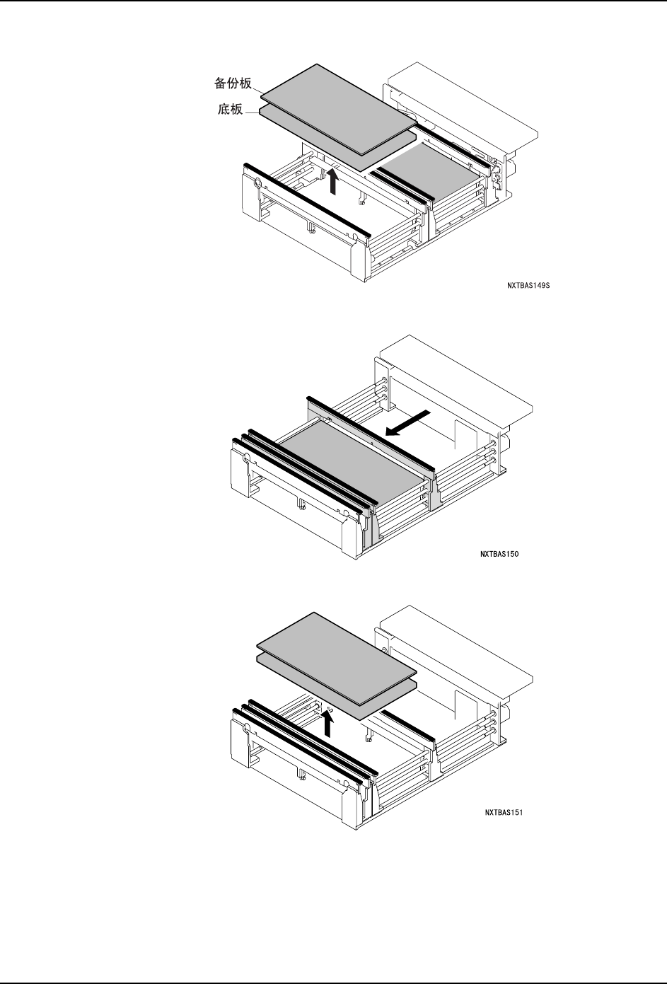 6. 在操作面板上显示出拆下备份板的向导。请拆下通道 1 侧的备份板。