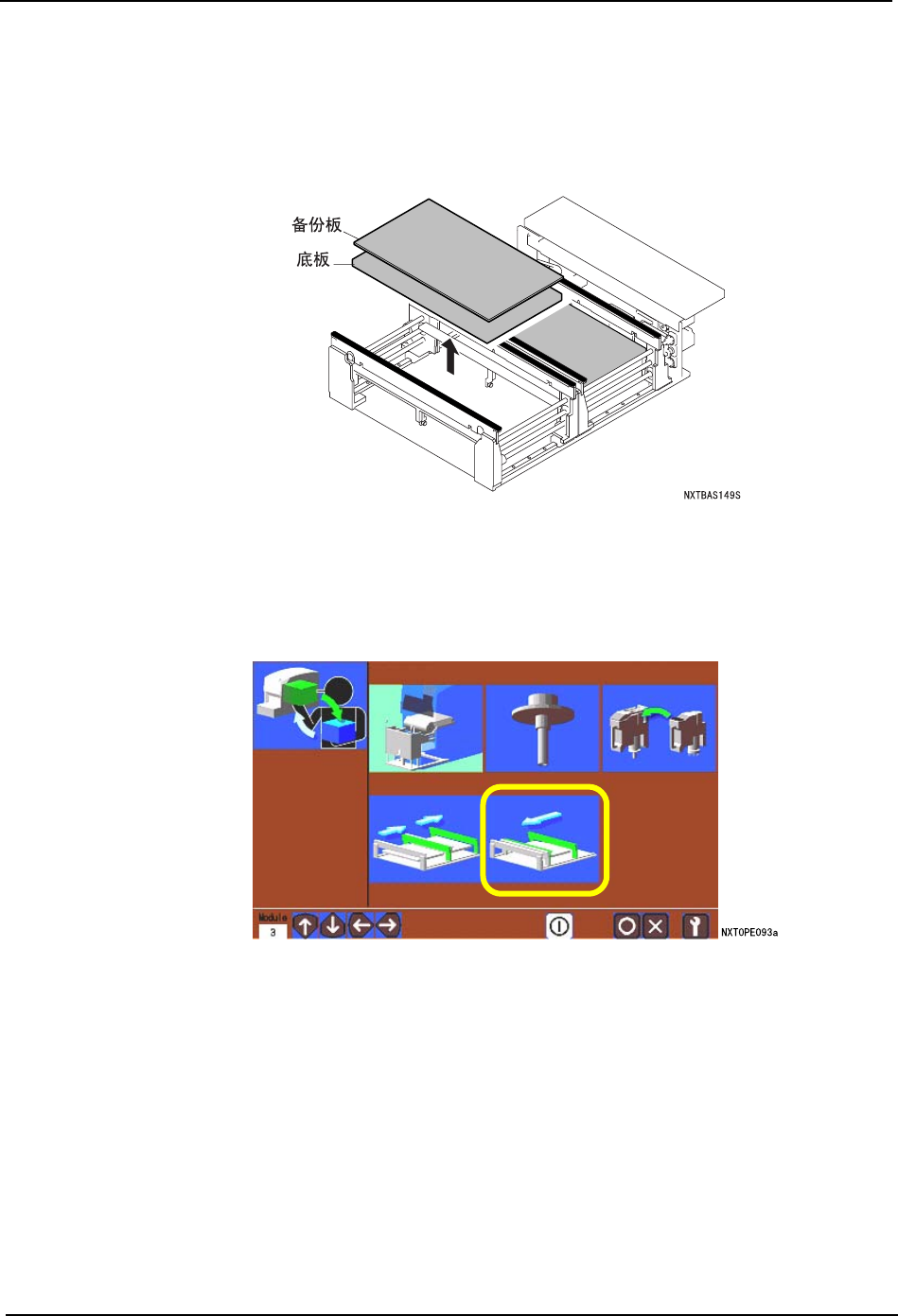 8. 在操作面板上显示出拆下备份板的向导。请拆下通道 1 侧的备份板。