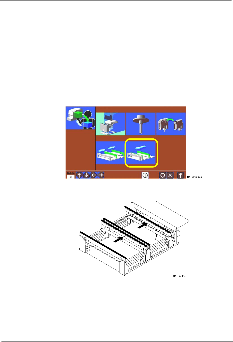 b. 握住模组的手柄,直到碰到阻停块为止慢慢地向己方拉出。