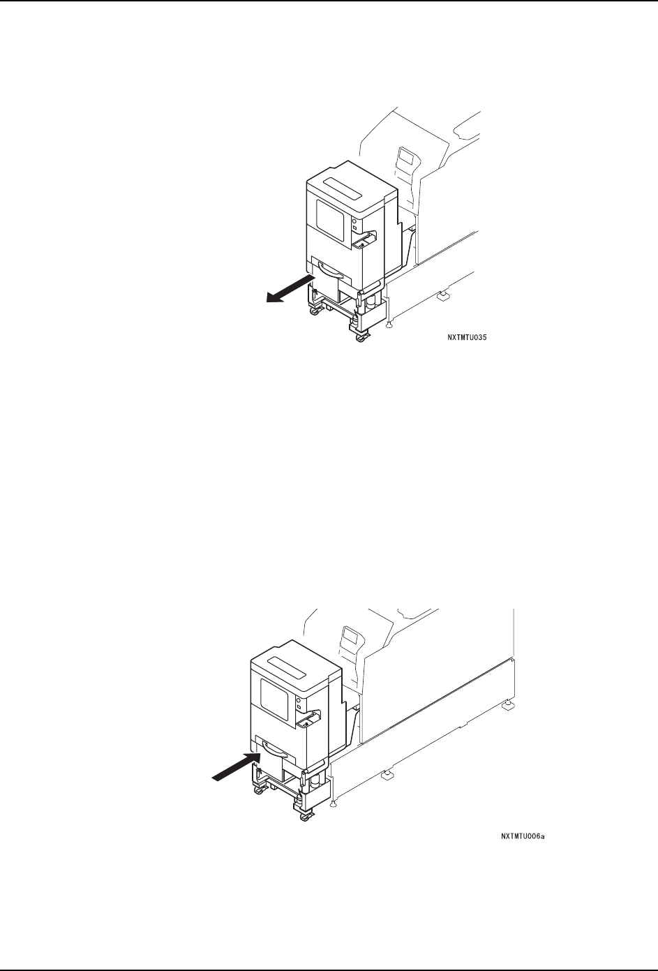 19.请拆除料盘单元 -L,解除脚轮的锁定,从模组中慢慢地拉出料盘单元 -L。卸下结束后,