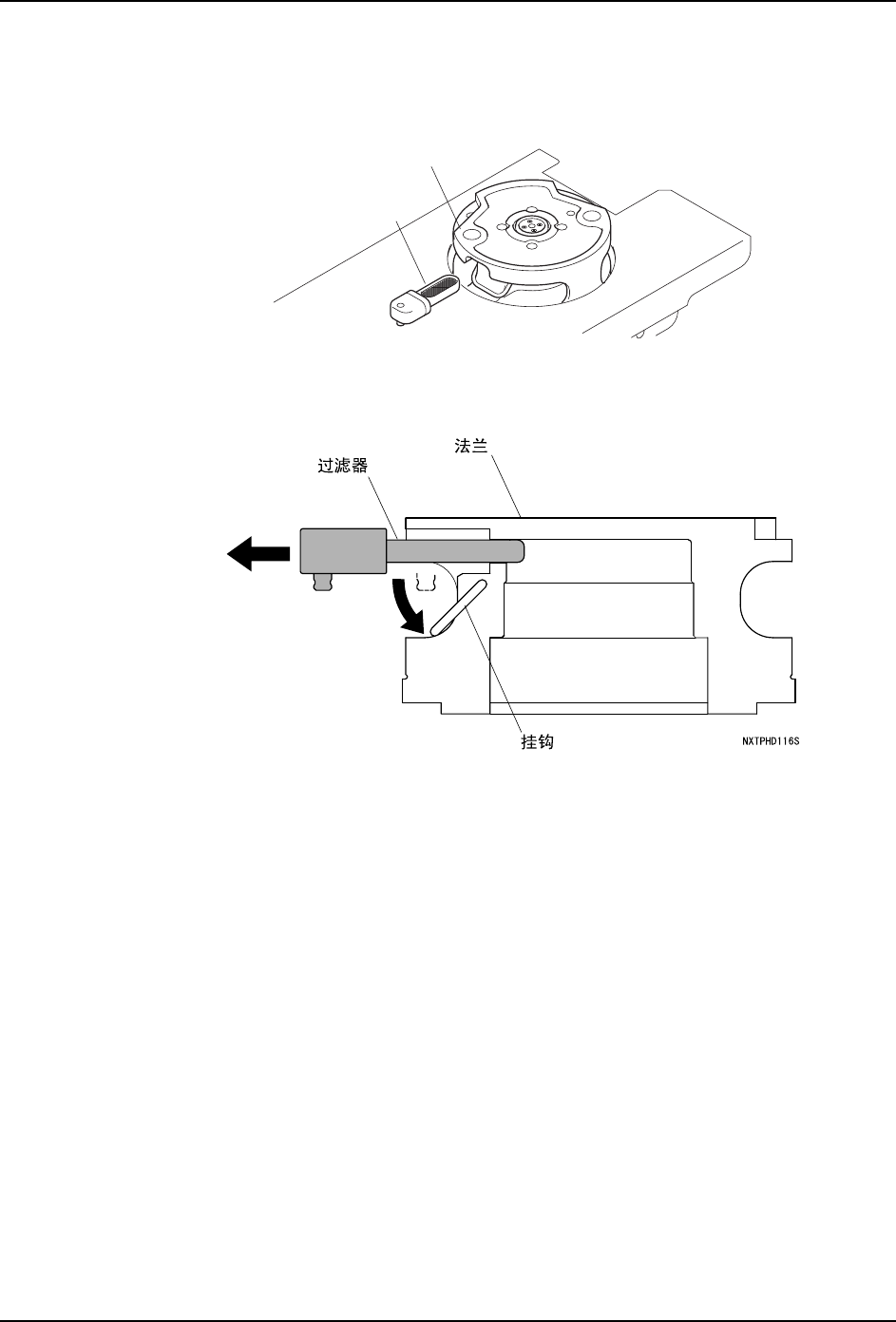 在工作头的法兰部没有装备过滤器的时候,必须清扫套筒 Assy。详细请参考「6.7.5 H01