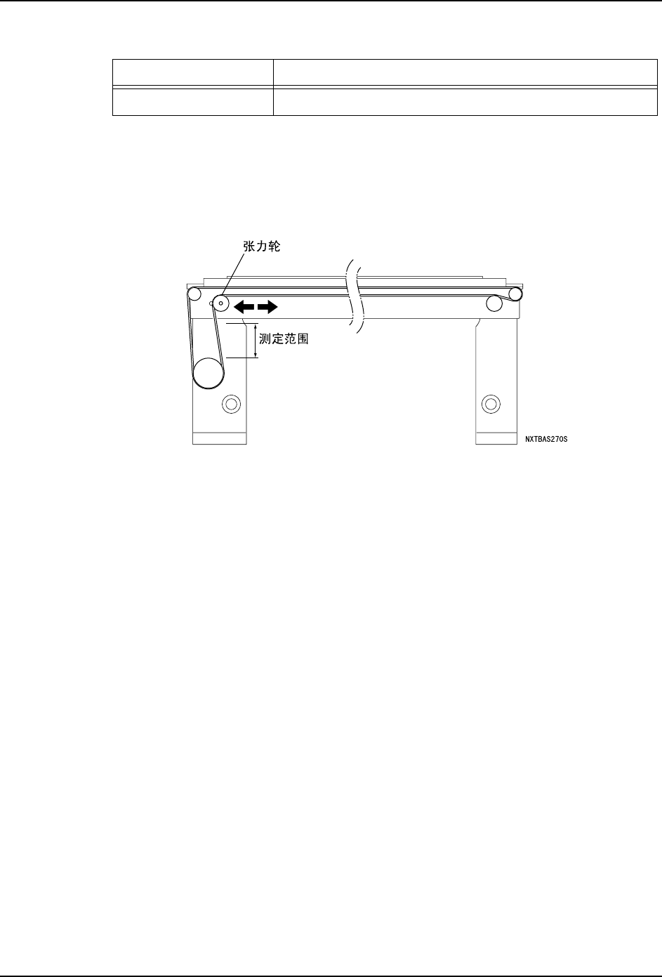 3. 将张力表放在测定处,测定搬运轨道传送带的张力。张力值偏离规定值时,请移动张力