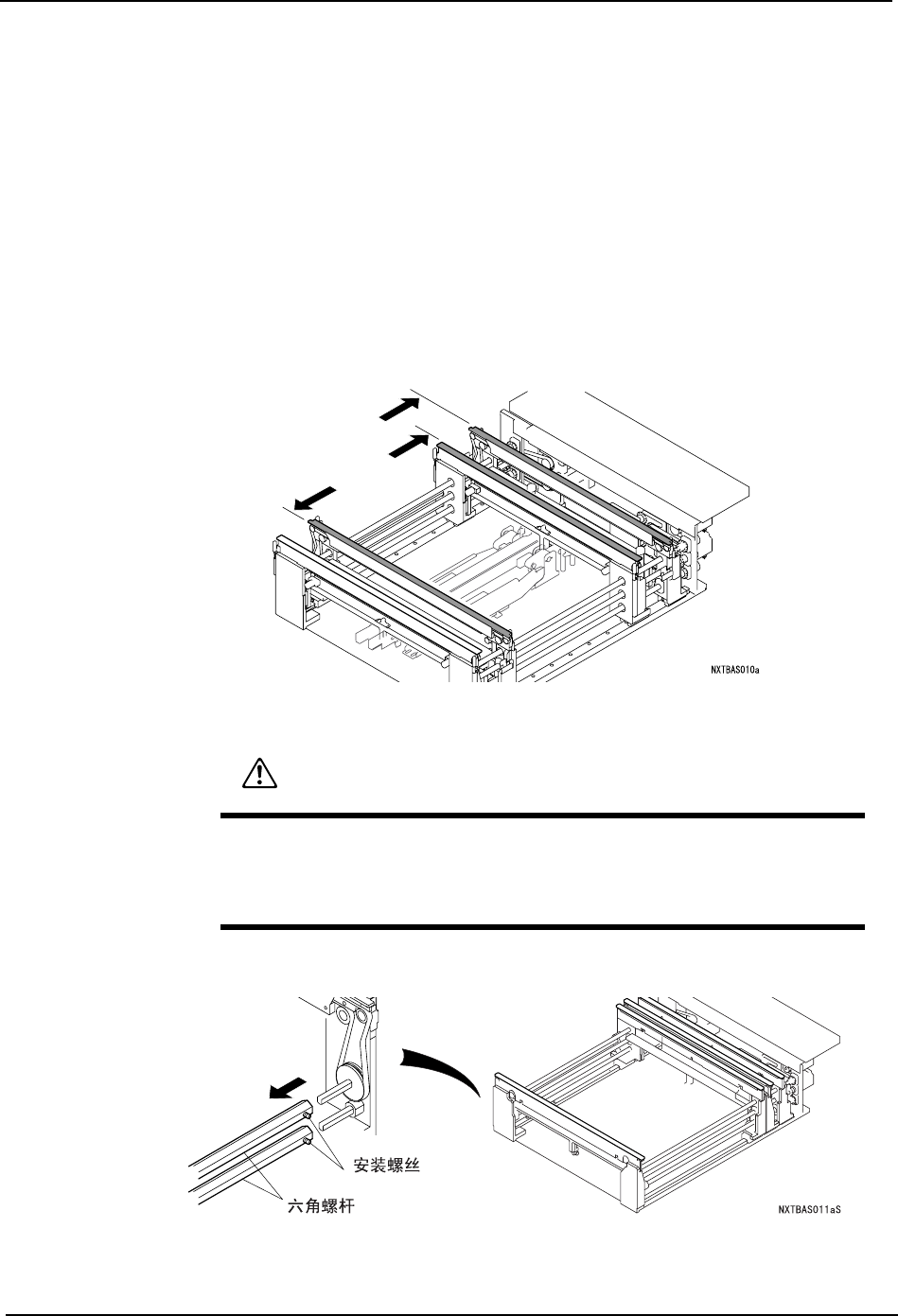 ·不要将手伸入到机器侧面的侧防护罩与基座之间,模组在拉出时有可能