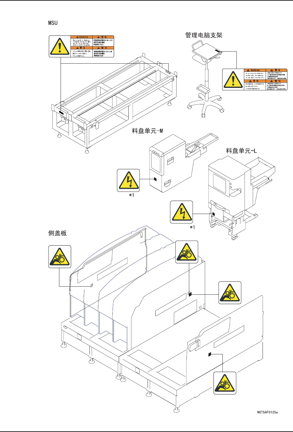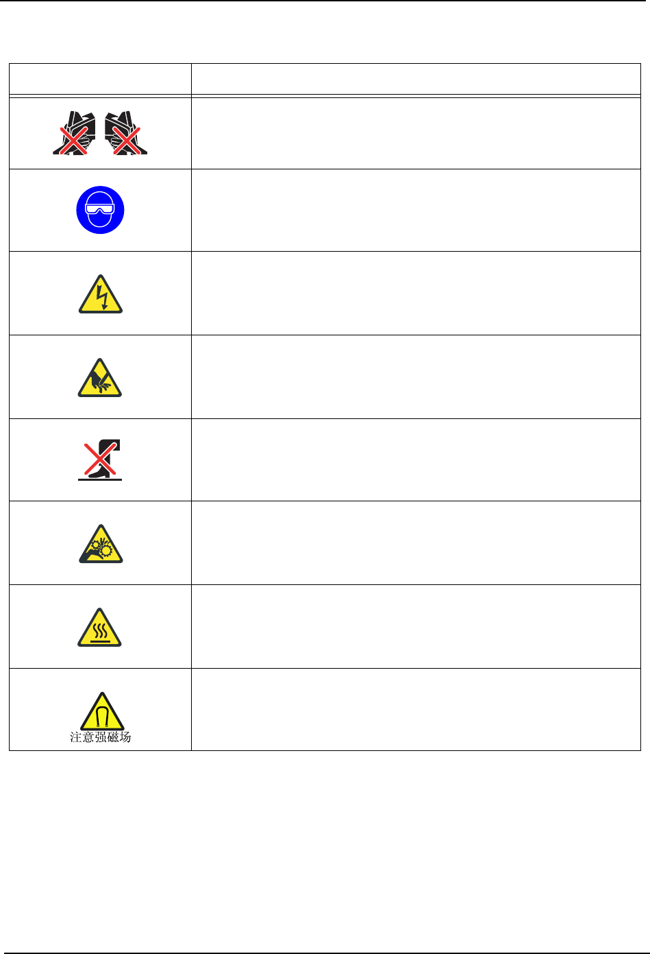 QD029-09 1. 安全指南 NXT 机械手册 17 1.6.1 NXT 安全标记的含义 标记 含义 警告:注意被夹住。 请不要将手指放入相邻的模组 。 义务的行为、指示:保护眼睛 ·因为照明装置的光线比较强烈 ,请不要直视机器。有必要直视时 请戴 好太阳眼镜等保护眼睛的保护 用具。 注意、警告:小心触电 *1:小心高压电、触电 。请切断电源后进行维修保养。 *2:一次电压请从 AV200V 到 2 30V ± 10% 50/60H…