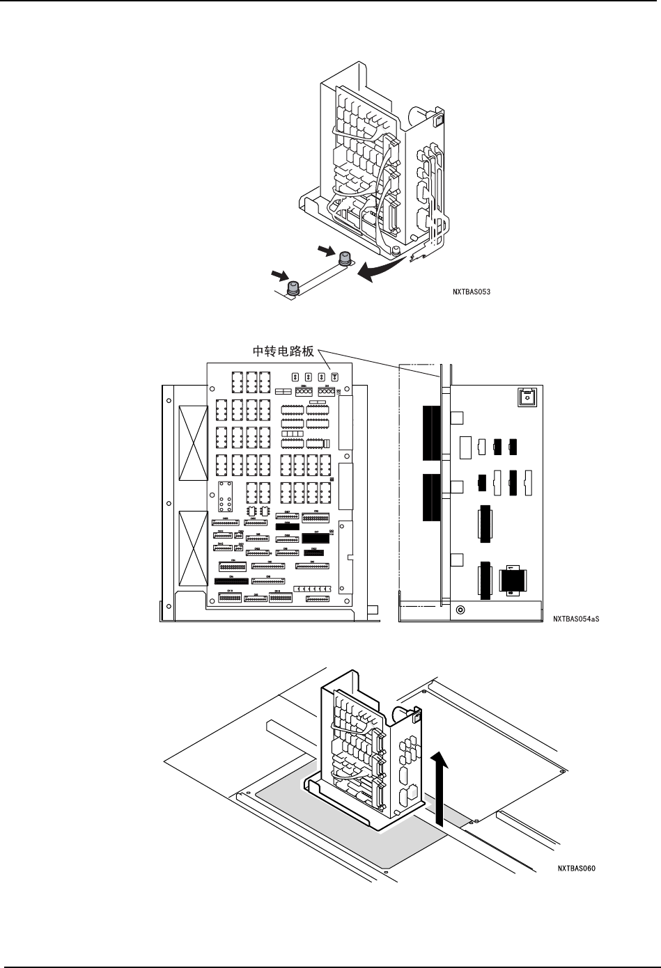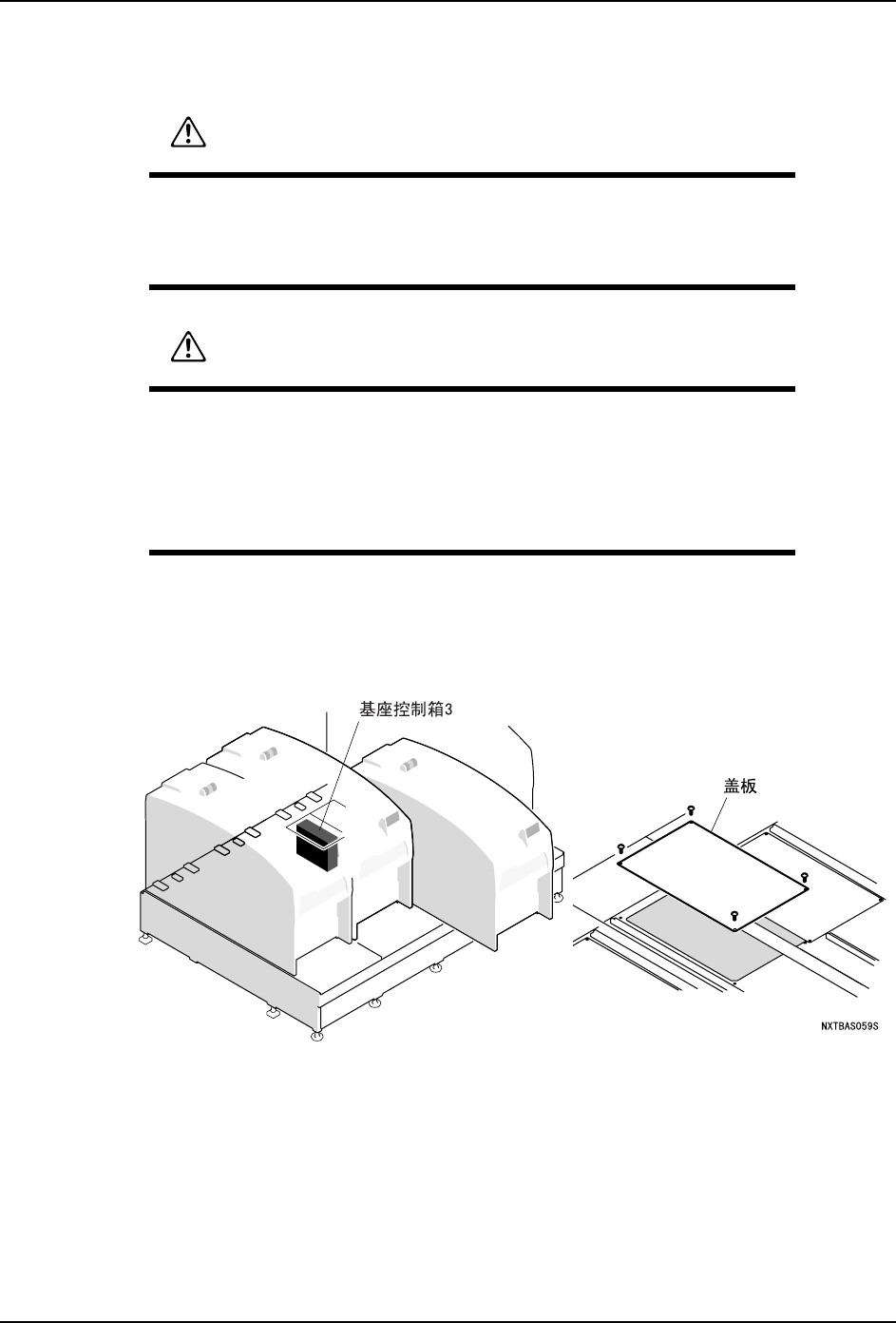 8. 部件的更换 QD029-09 342 NXT 机械手册 8.10 基座控制箱 3 的更换 8.10.1 仅限于 8M 基座 1. 将主电源开关 OFF,切断机 器的电源。 2. 拆下螺丝 (4 根 ),取下盖板。 警告 · 在进行更换操作时,请 务必在切断电源后进行。 · 在进行 更换模组伺服箱的操 作时,请注意使其他的操作者不要进行 插入 模组的操作。有手指被 夹住而切断的危险。 注意 · 连接电缆的插接,请握 住插头不要拉电缆…