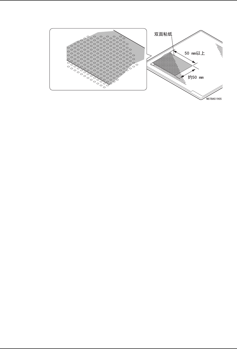 3. 请在玻璃电路板上用双面粘纸 (约 50mm 宽,长 50mm 以上)粘贴。此时,请注意在右上
