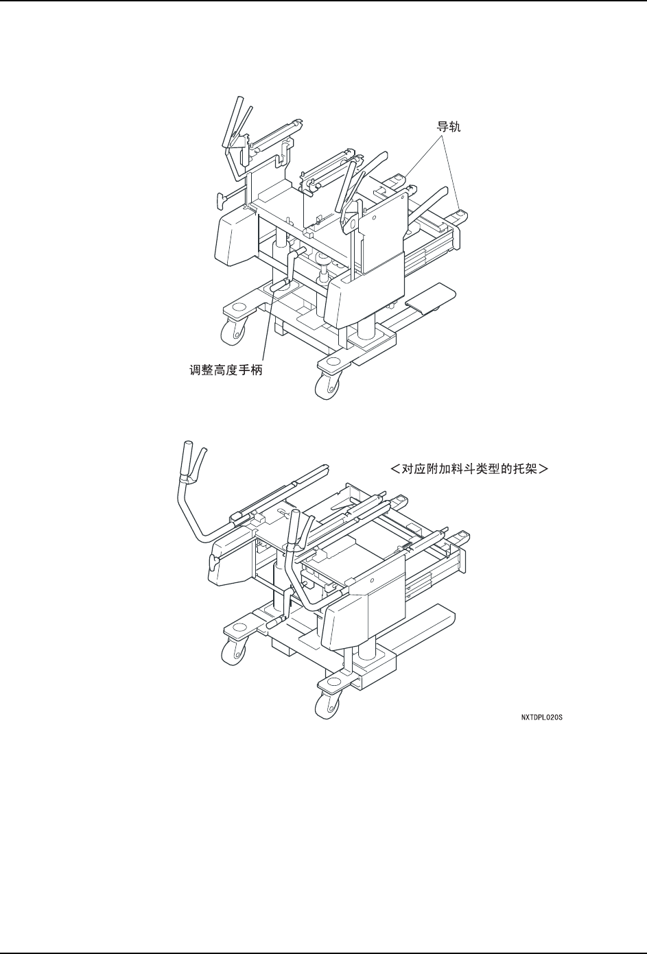 QD029-09 2.NXT 的构成部分 NXT 机械手册 35 2.12 MCU( 模组更换台车 ) 的构成部分 将模组从基座上拆除的时候,安 装到基座上使用的台车。