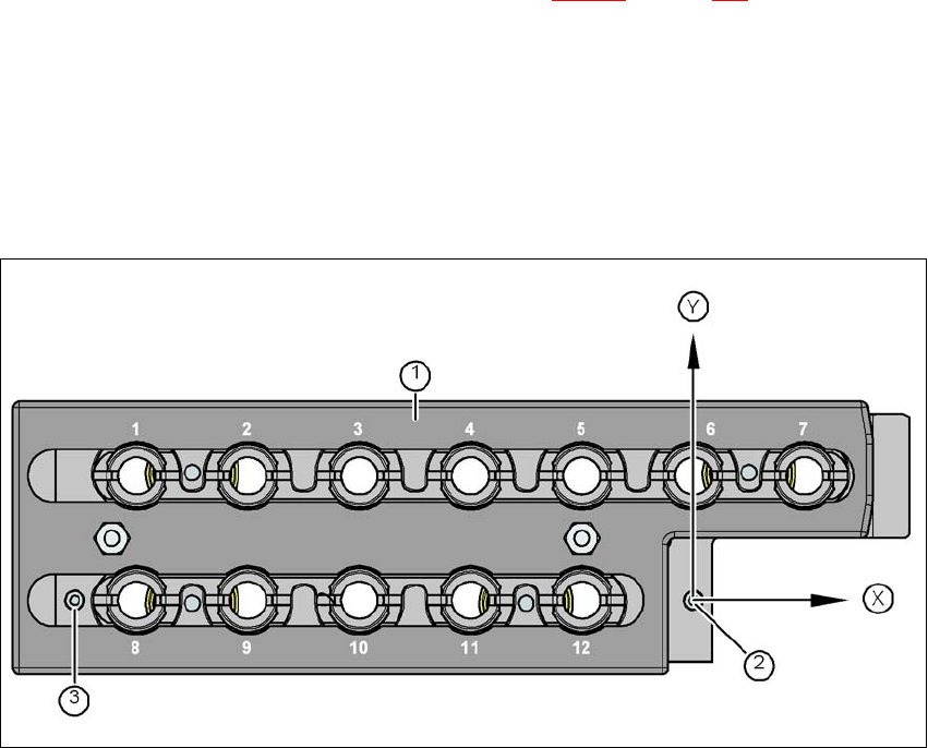 Ábra 6.1 - 13 Pipettatár- garázsszámozás, jelzések a pozíció és a szöghelyzet meghatározásához