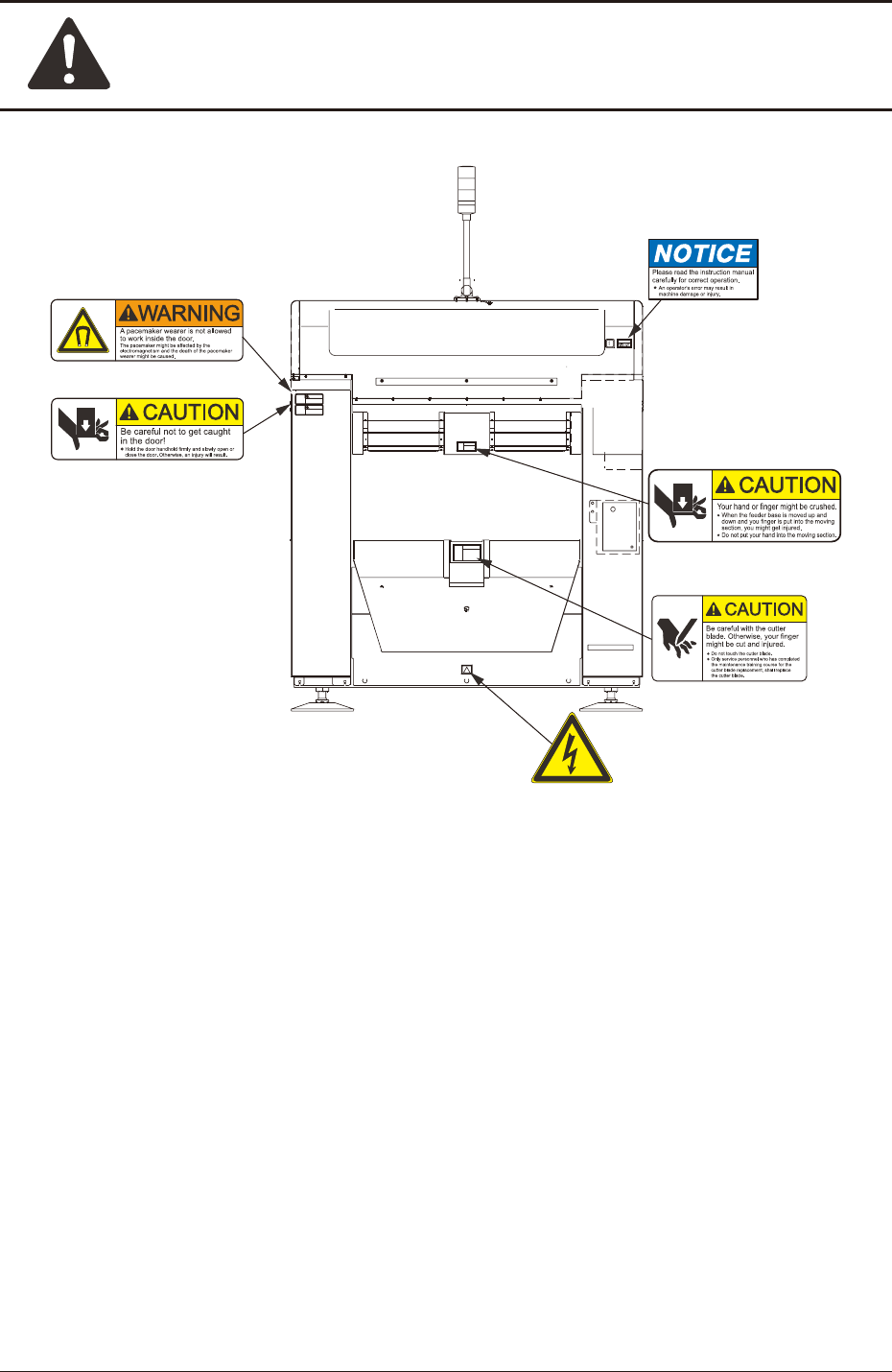 The alert labels are afxed on dangerous and caution-required areas.