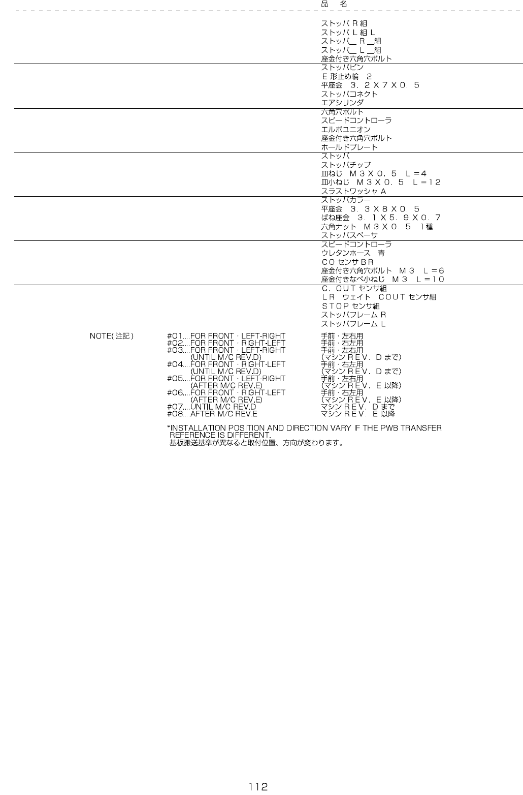 REF.NO NOTE PART NO D E S C R I P T I O N Qty