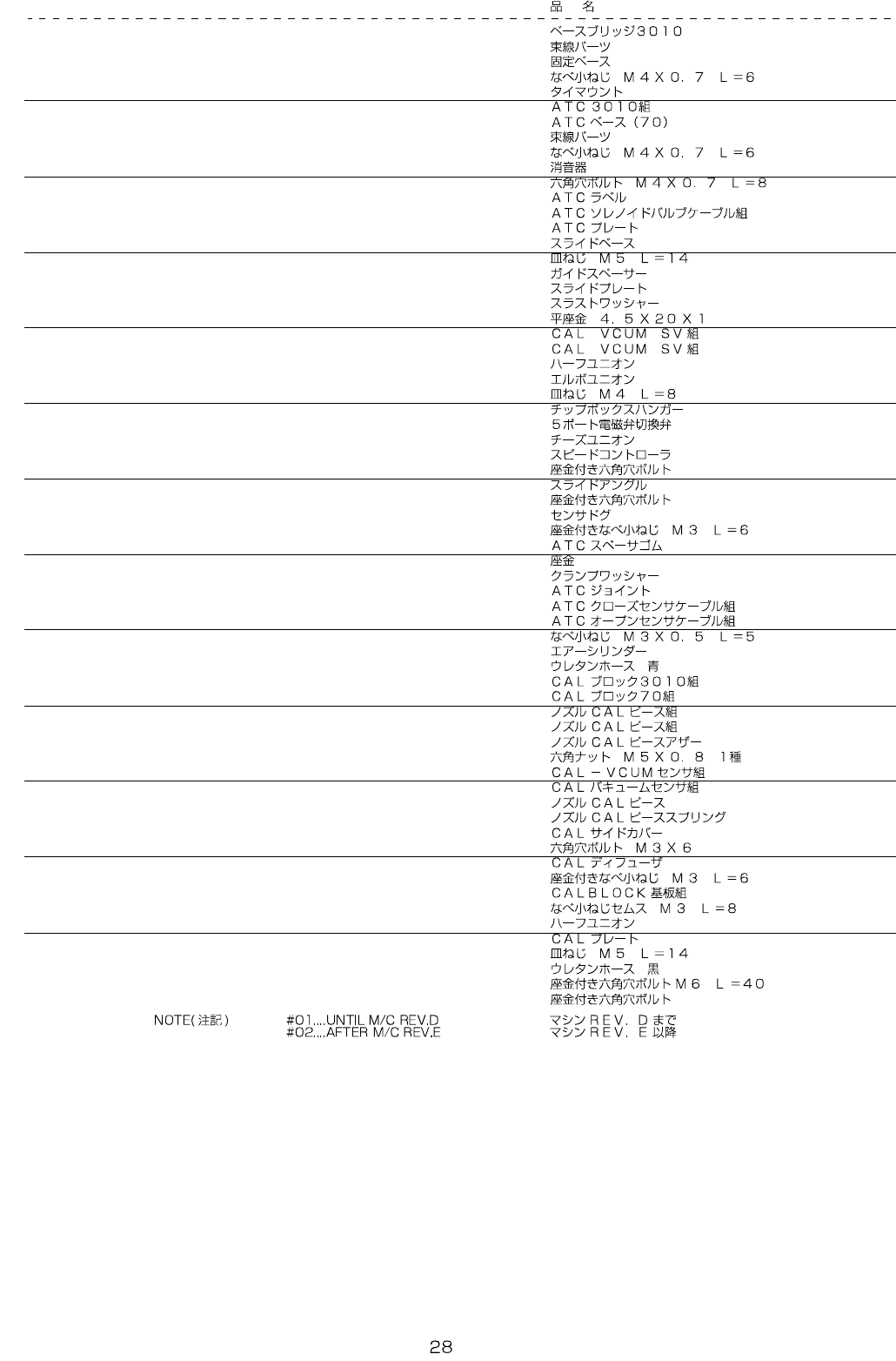 REF.NO NOTE PART NO D E S C R I P T I O N Qty