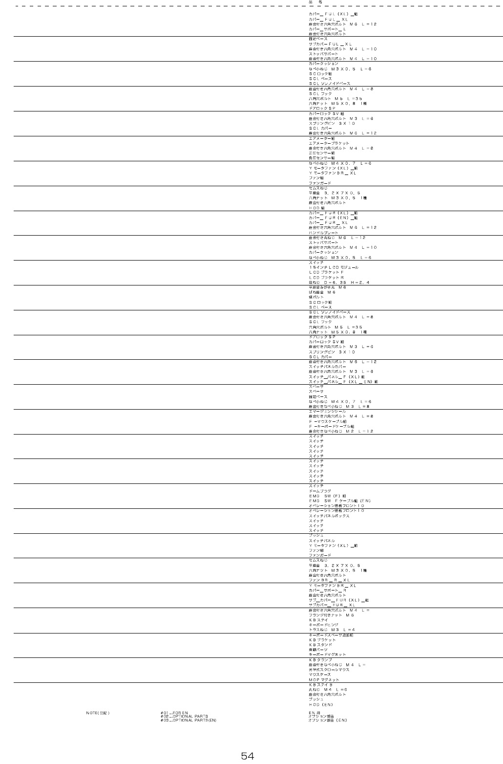 REF.NO NOT E PAR T N O D E S C R I P T I O N Qty