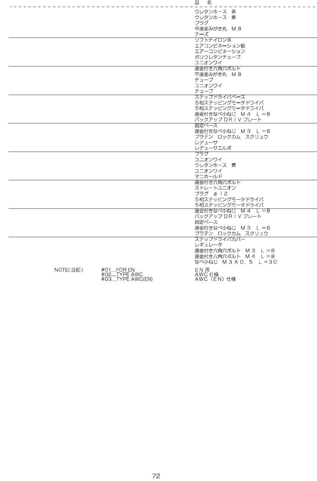 REF.NO NOTE PART NO D E S C R I P T I O N Qty