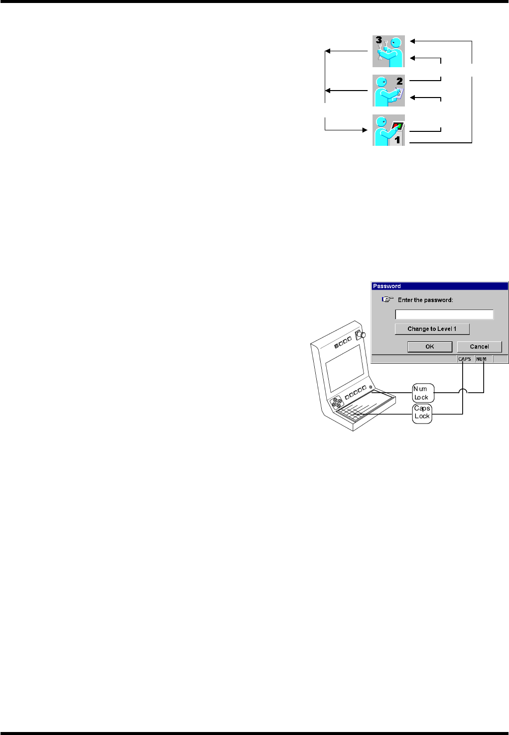 设备刚开始运行时是级别 1,输入在本节中说明的密码,