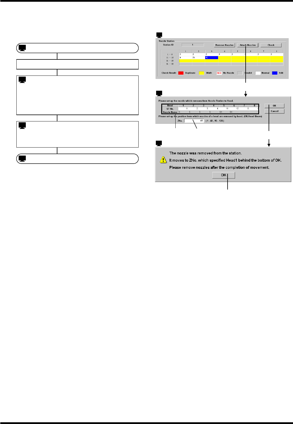 通过画面上的 <Remove Nozzles> (吸嘴拆卸) 或 <Attach Nozzles> (吸嘴安装),显示条件设定用的画面,并