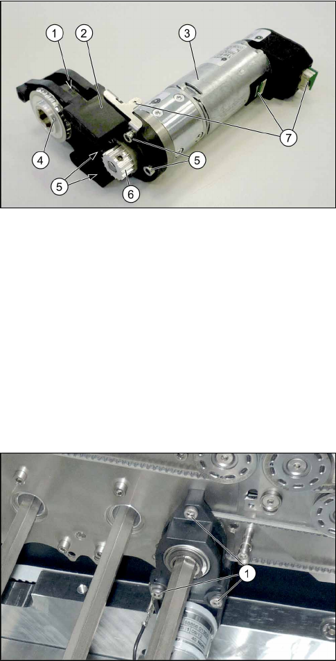 ► Der Tausch des Bandantriebs erfolgt analog zum Transportantrieb. Lesen Sie hierzu den Ab-
