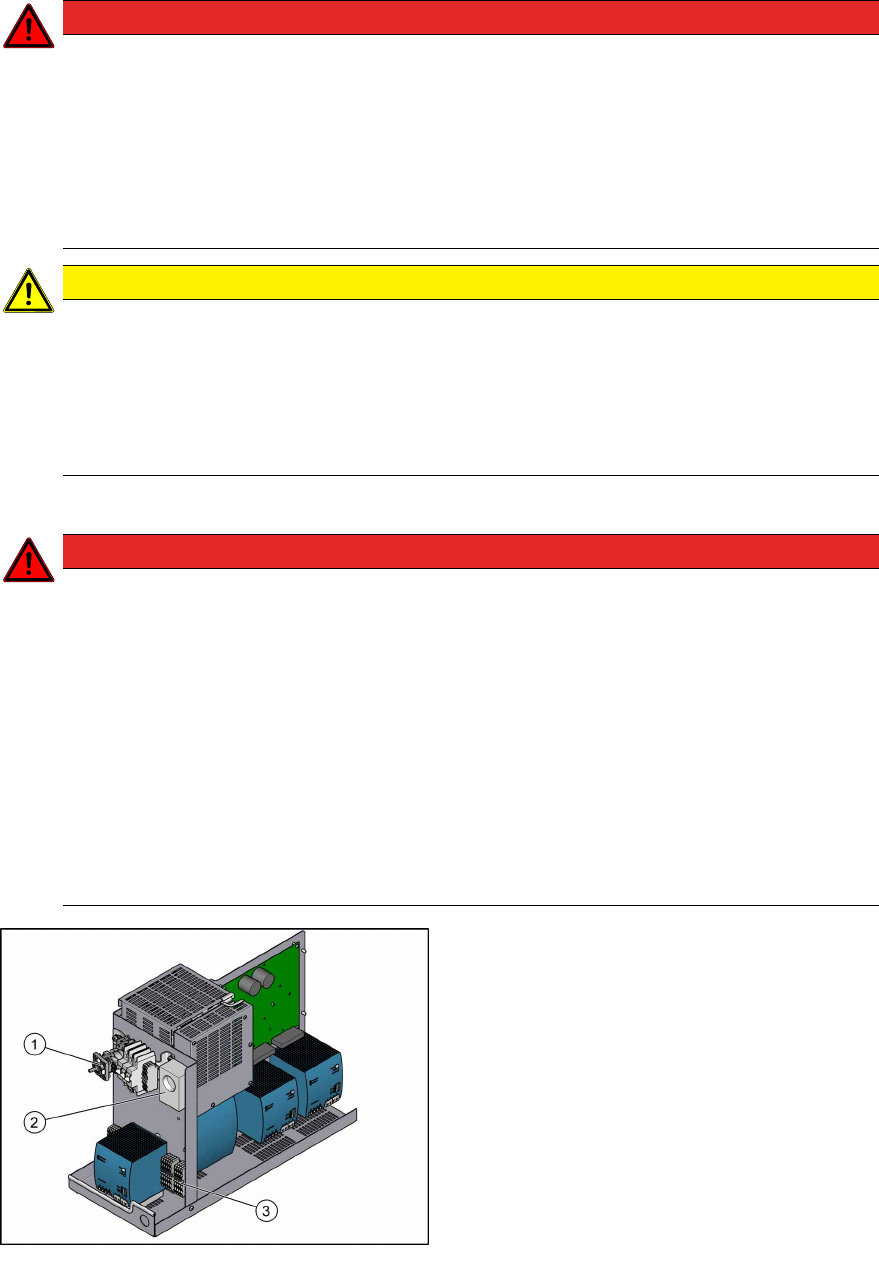 ► Work on the power supply and the contactor safety breaker (CSB) must only be car-