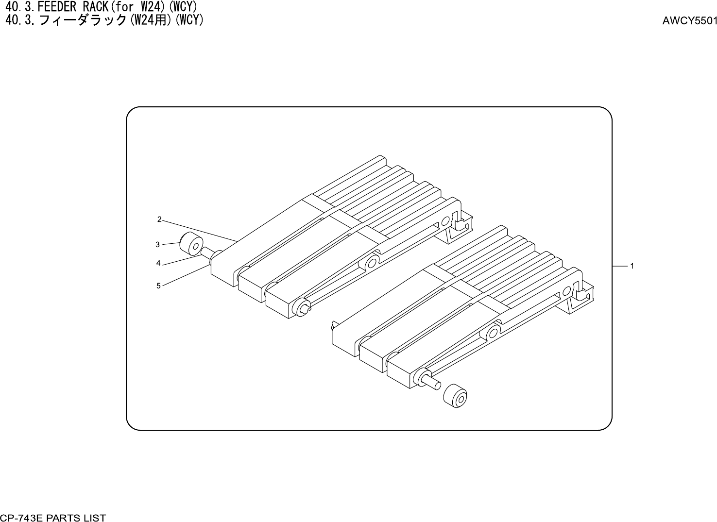 40.3.FEEDER RACK(for W24)(WCY) 40.3.フィーダラック(W24用)(WCY) AWCY5501 番号 図番 & コード番号 個数 品名 規格 材質 備考 No. Drg.No. & Code No. QTY Description Rating Materials Remarks 1 AWCY5501 1 RACK ラック OT 2 WCY0222 23 PLATE, PARTITION…