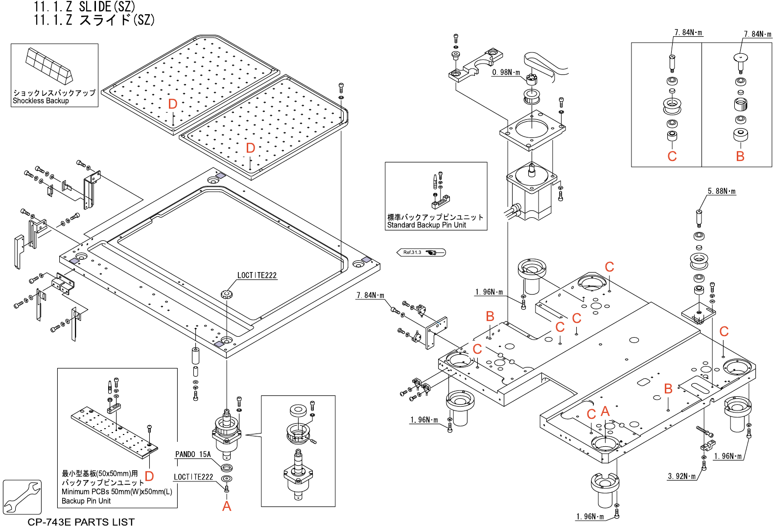11.1.Z SLIDE(SZ) 11.1.Z スライド(SZ) 番号 図番 & コード番号 個数 品名 規格 材質 備考 No. Drg.No. & Code No. QTY Description Rating Materials Remarks 1 ADGSZ8010 4 BALL SCREW ボールネジ W1601-392PXU-C5Z9 OT 2 DGSZ0060 4 PULLEY, TIMING プー…