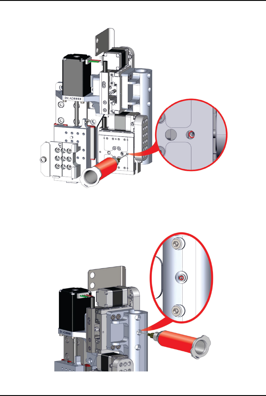 16. Grease the four (4) Delta Z linear bearings by inserting the syringe into the small holes and