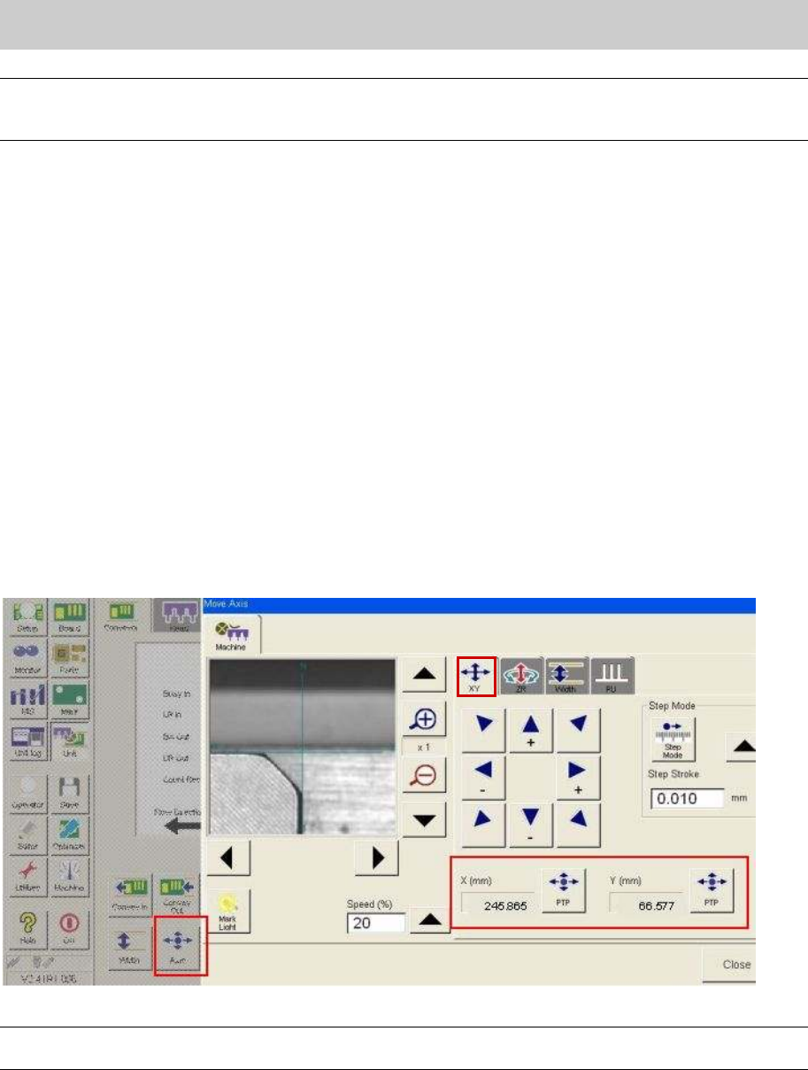 Click on the [PTP] buttons of X-axis and Y-axis and input the reference coordinates recorded in