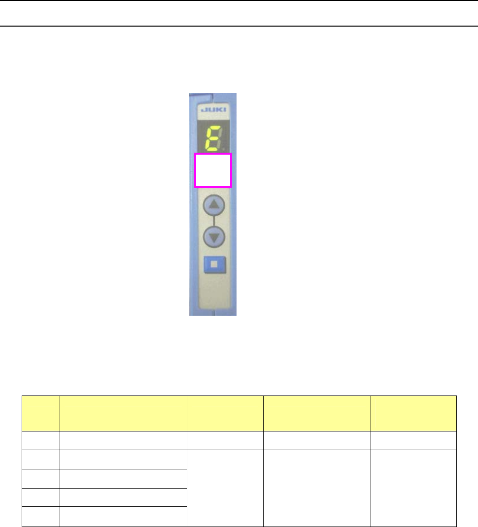 EF32FS/44FS/5 6FS 使用说明书 5-1 5 故障排除 5-1 错误显示 操作本装置时,有时会显示下列错误。 ・ 装置发生某种硬件性错误,不能执行转换处理时。 ・ 发生软件性的内部错误,不能继续进行处理时。 图 5-1-1 为错误号码 表 5-1-1 错误一览 显示 错误名 复位恢复 ※1 排除错误的方法 ※2 复位恢复后 的初始状态 E1 EEPROM 写入错误 × 关闭供料器电源 - E2 电源电压下降错误 E3 张力…