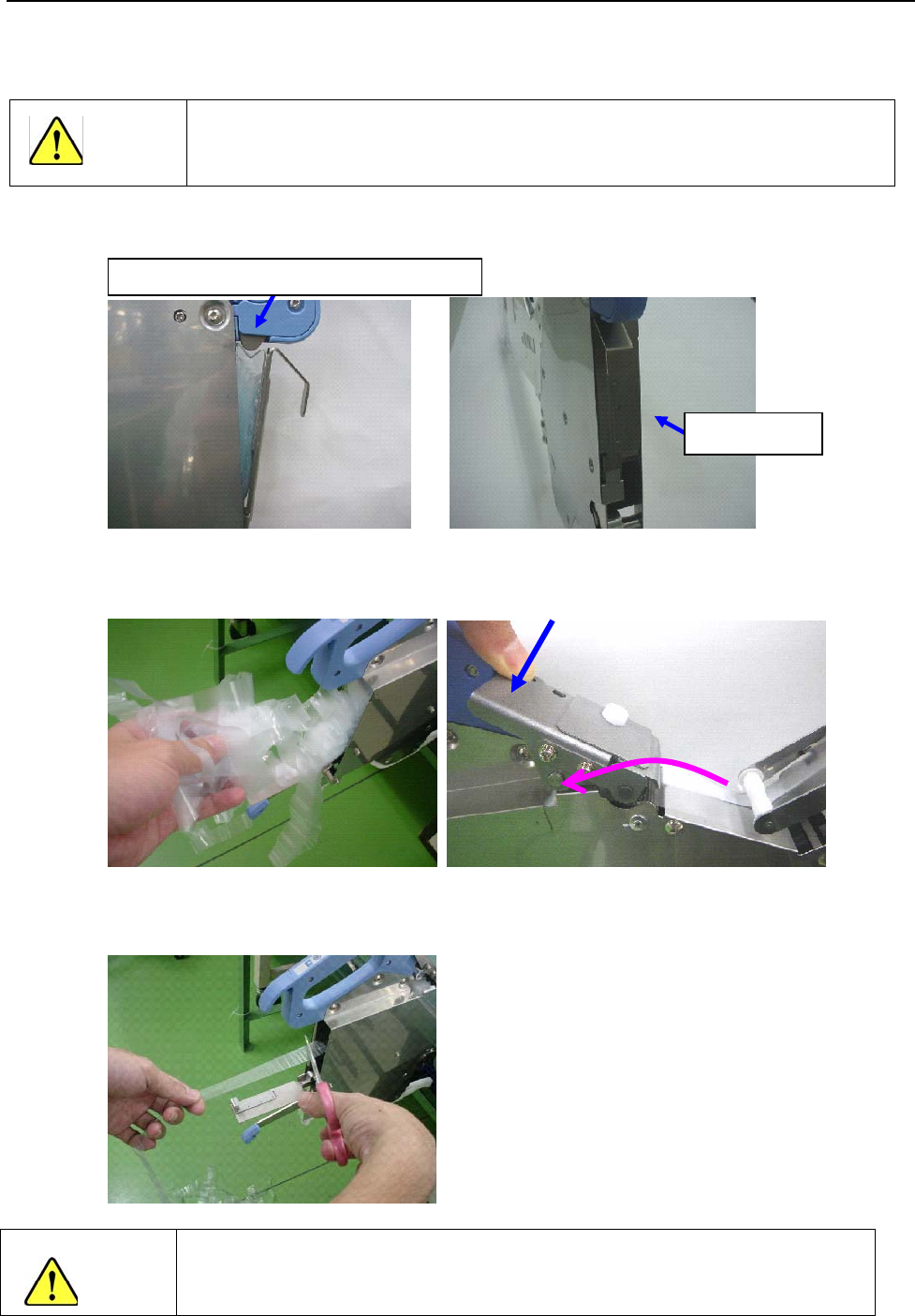 3)在生产中回收护罩带时,请用剪刀在护罩带废弃口处剪断护罩带。
