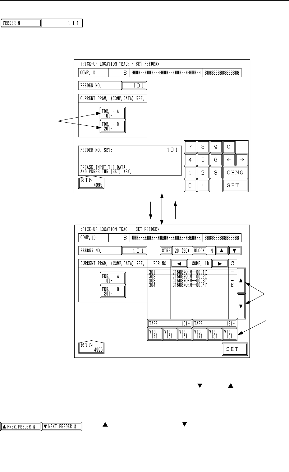 (2) Select the feeder No., using the [ ] or the [ ] key B.