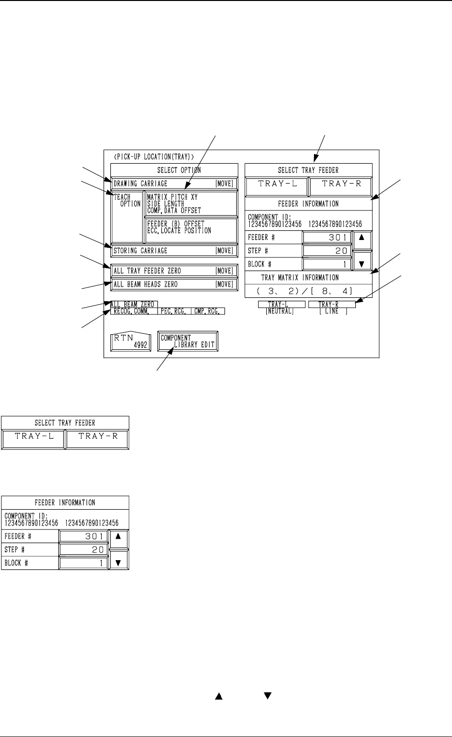 When the [TRAY] key is pressed at the “PICK-UP LOCATION” display, the