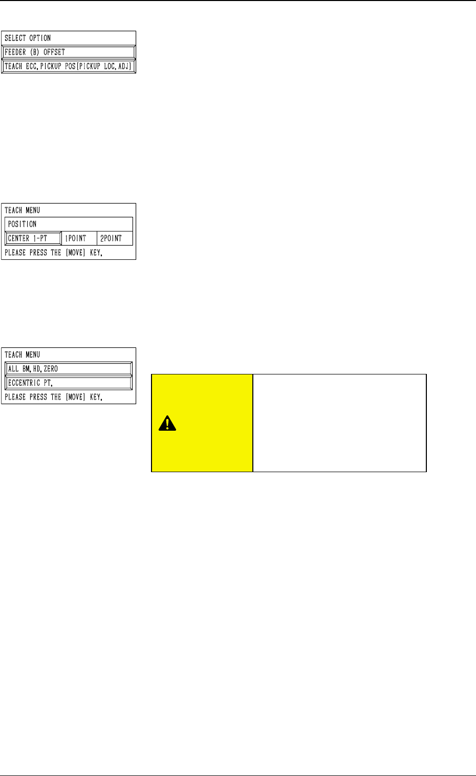 0305-001 Tg0860-PM-MM 6.12.2 FEEDER (B) OFFSET • • • • • ECC. LOCA TE OFFSET Display (Option) • This display allows the teaching operation on the feeder (B) offset and ec- centric pick-up location of the multi-layer tray…