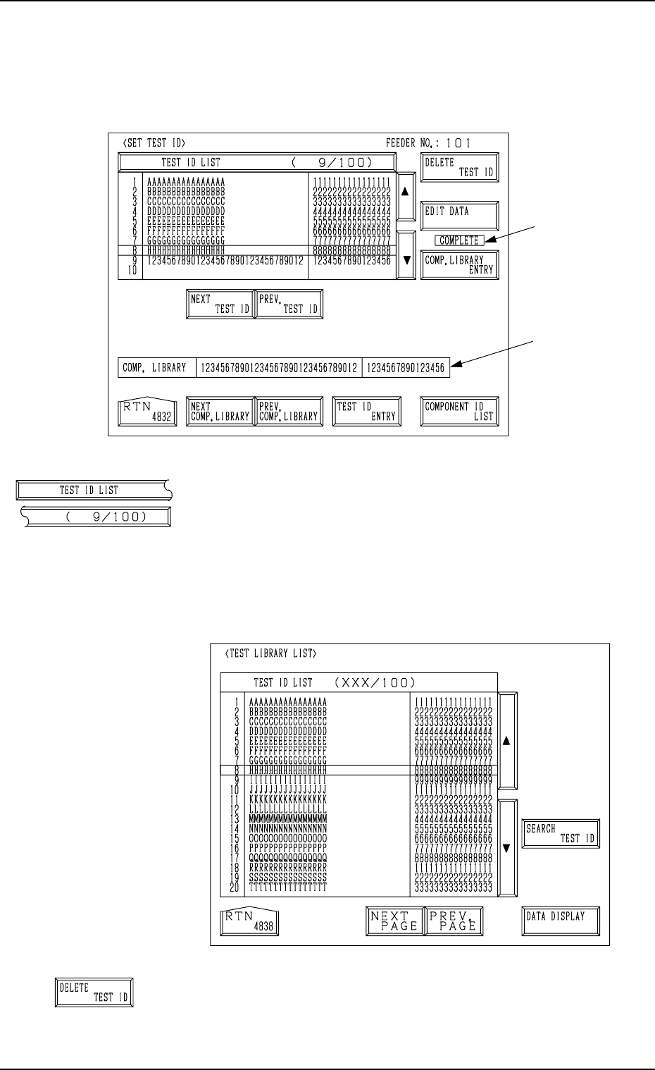 When the [TEST ID LIST (XXX/100)] key is pressed at