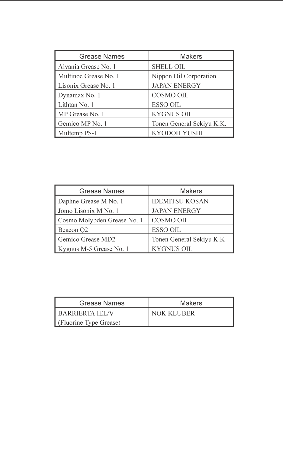 Tg0860-PM-MM 0305-001 1-4 2.2 Preparation for Lubrication (5) Hand Grease Gun Standard : KH-120 Part No. : 630 062 2577 Maker : Y amada Y uki Note: Do not use the hand grease gun except for supplying DAPHNE EPONEX GREASE…