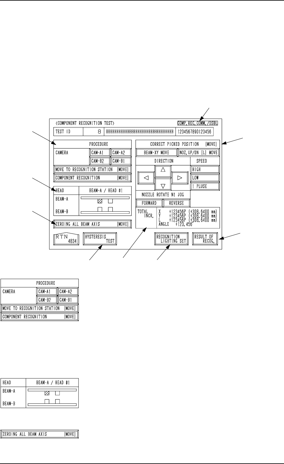 0305-001 Tg0860-PM-MM *4 CORRECT PICKED POSITION [MOVE] The posture of the picked component can be corrected while the movement is being checked on the recognition moni- tor . [BEAM-XY MOVE] Key This key is used to corre…