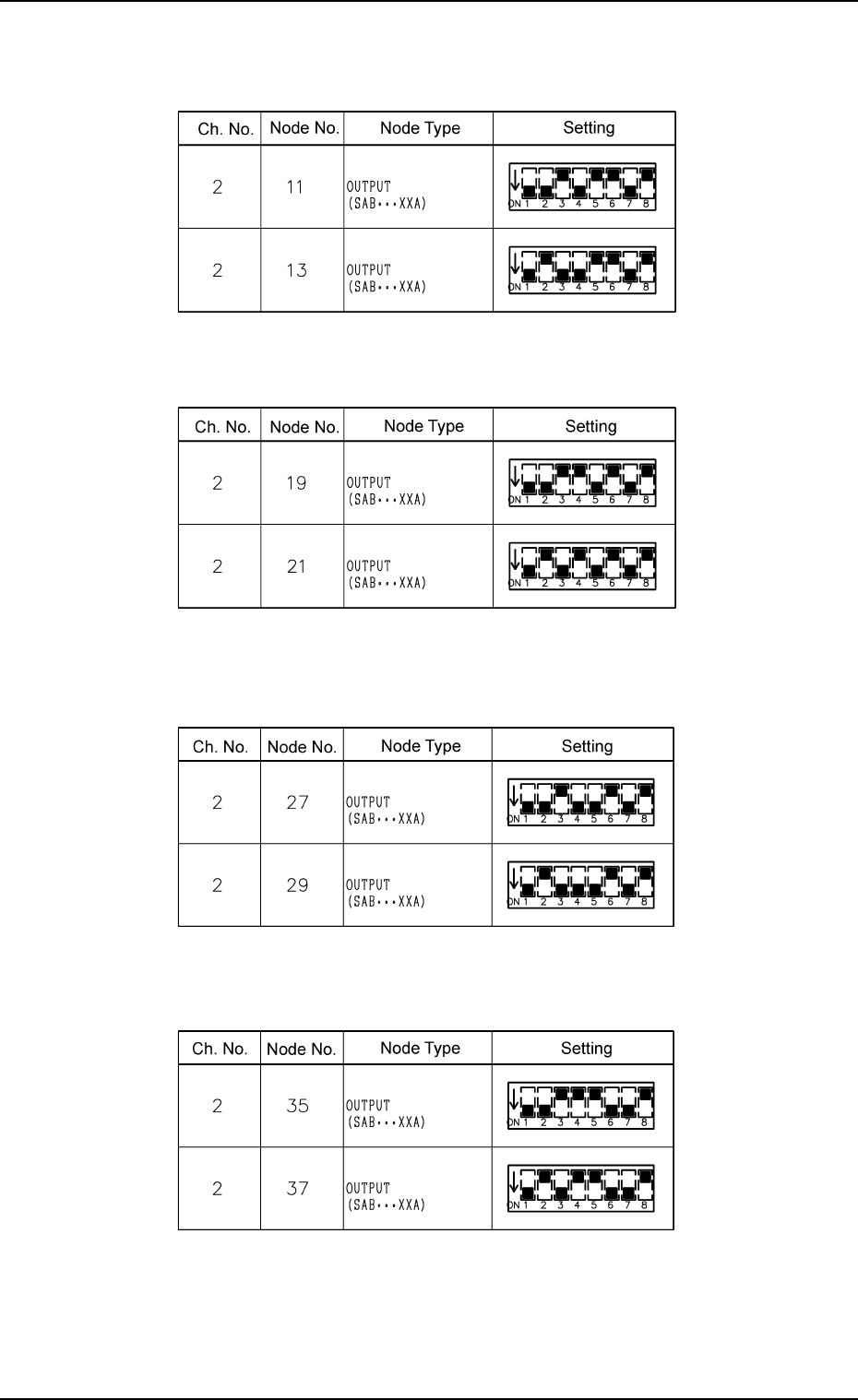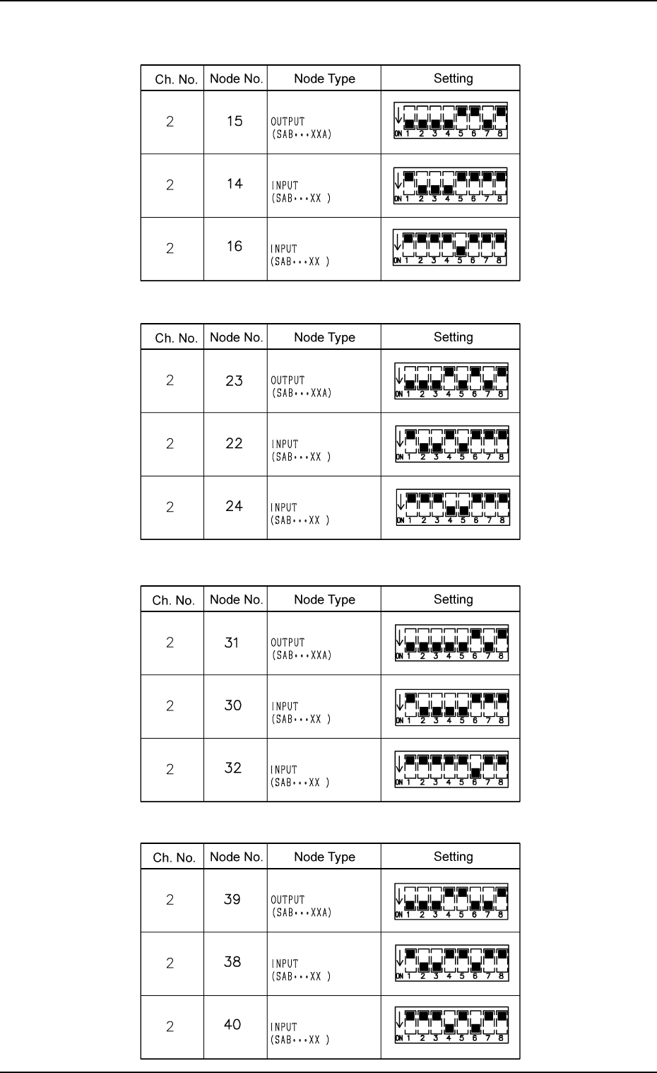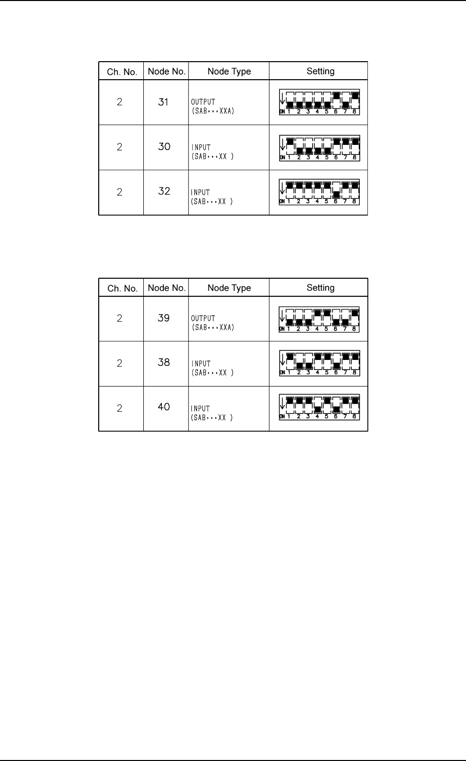 Tg0860-PM-MM 0305-001 3-183 8.1 INPUT CHECK Display T able 4C13 Setting of T ray R SDS Nodes (Option) T able 4C12 Setting of T ray L SDS Nodes (Option)
