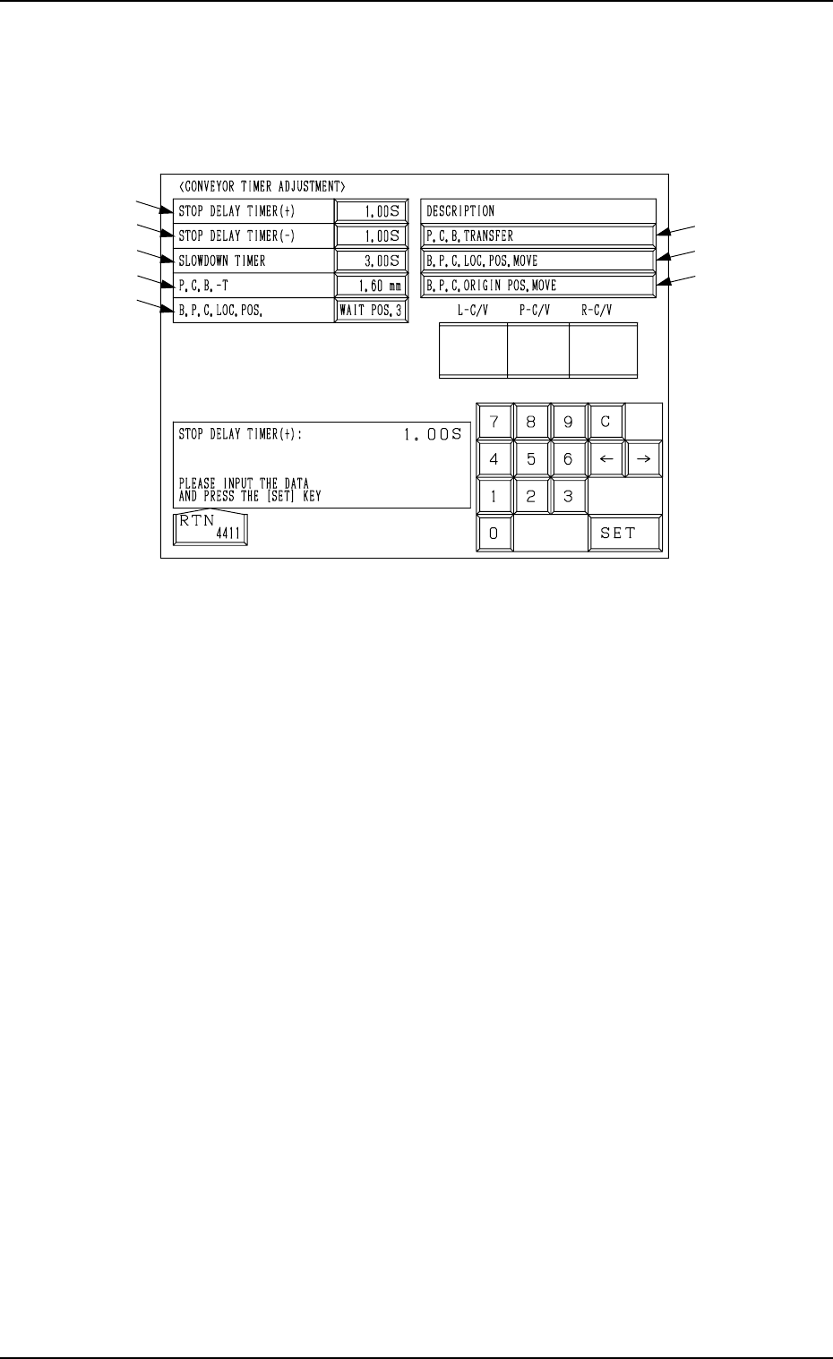 9.1 CONVEYOR TIMER ADJUSTMENT Display