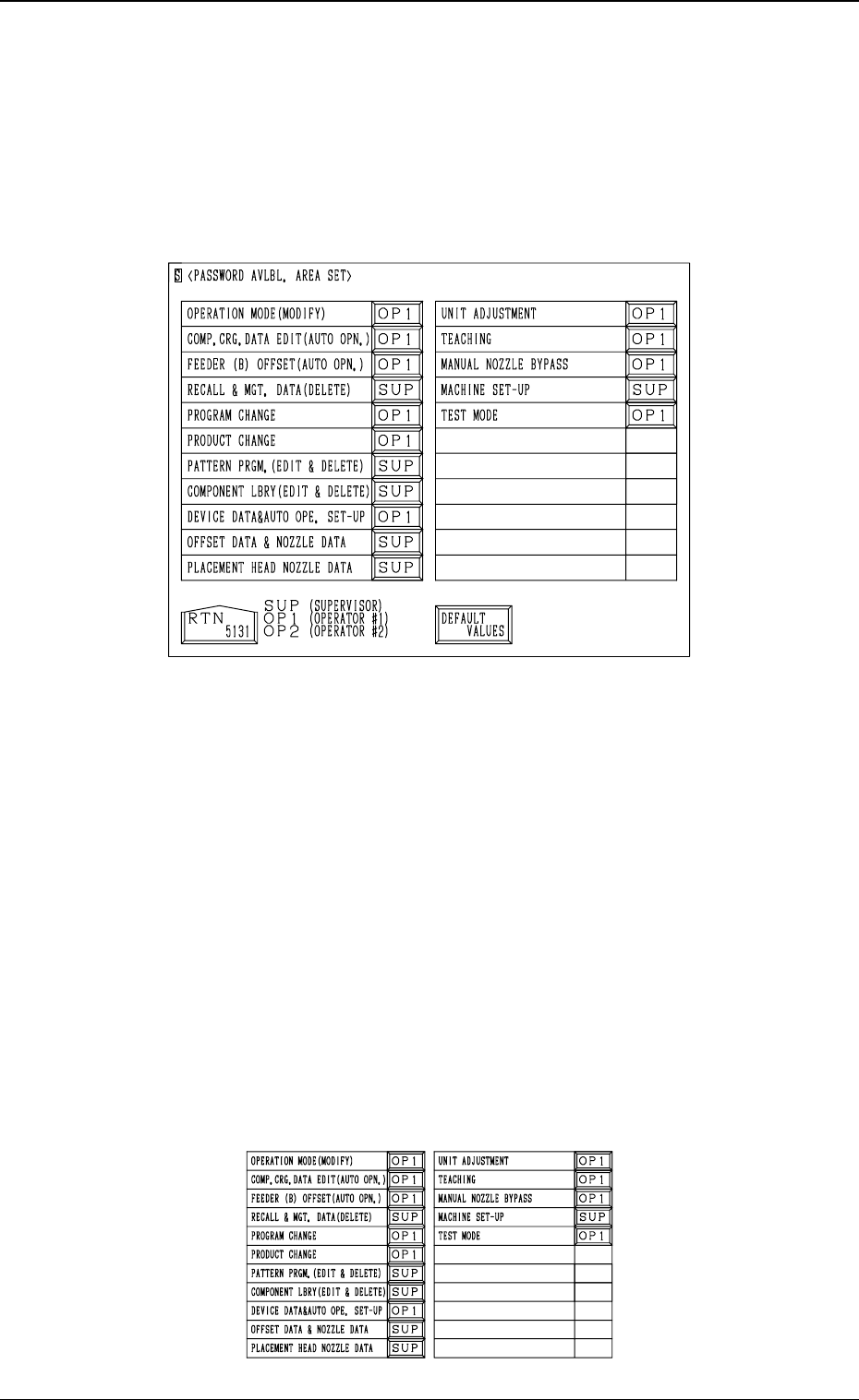 (2) Open the “PASSWORD AVLBL. AREA SET” display (Fig. 4.3). (Hier-