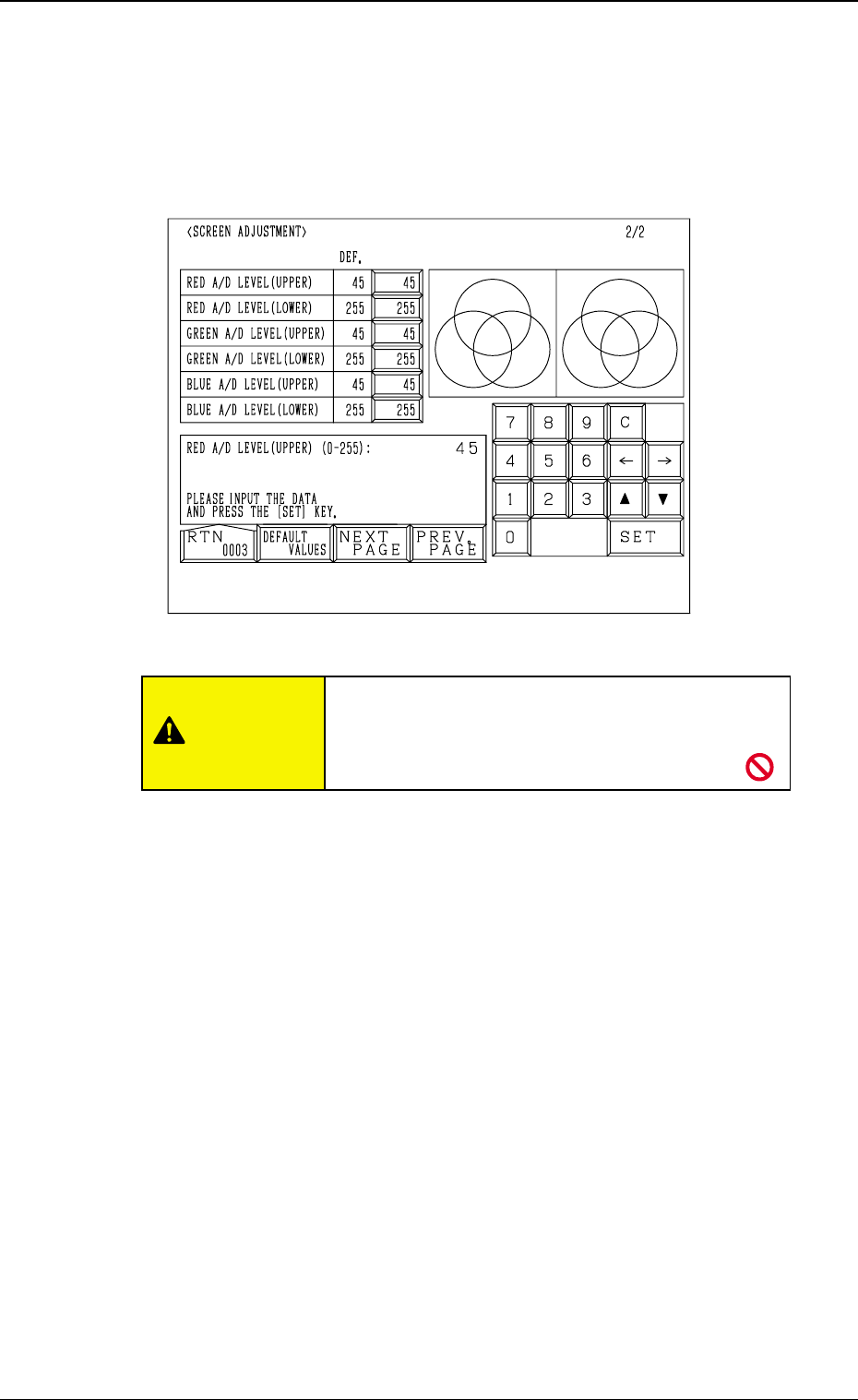 When the [RTN] key is pressed at the “SCREEN ADJUSTMENT” display