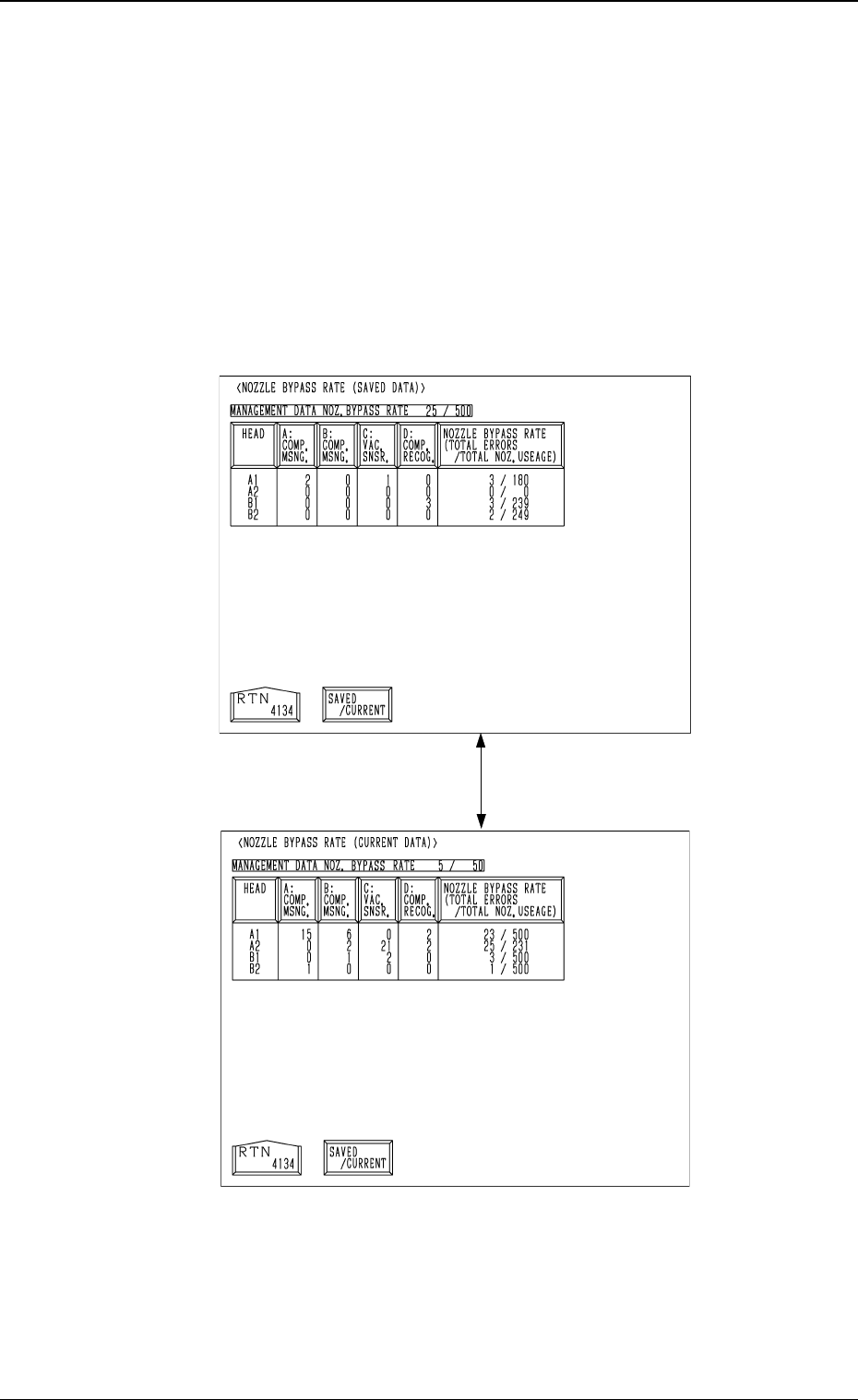The “NOZZLE MESSAGE RATE (SAVED DATA)” shows