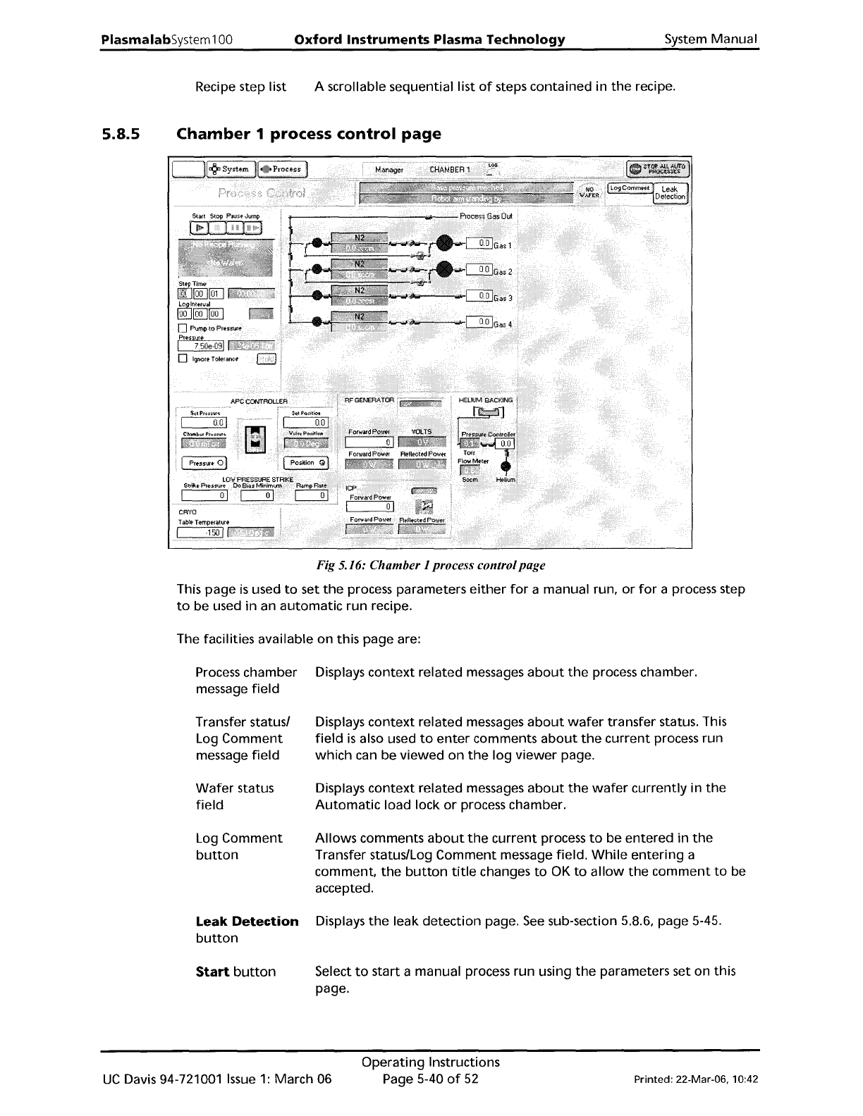 PlasmalabSystem 100 Oxford Instruments Plasma Technology System Manual Recipe step list A scrollable sequential list of steps contained in the recipe. 5.8.5 Chamber 1 process control page Fig 5.16: Chamber 1 process cont…