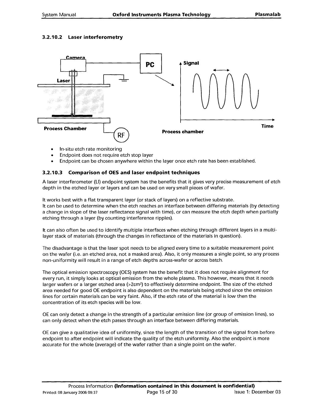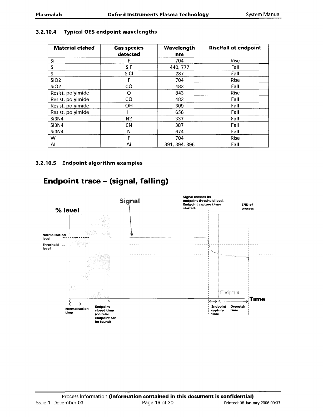 Plasma lab Oxford Instruments Plasma Technology System Manual 3.2.10.4 Typical OES endpoint wavelengths Material etched Gas species Wavelength Rise/fall at endpoint detected nm Si F 704 Rise Si SiF 440, 777 Fall Si SiCI …