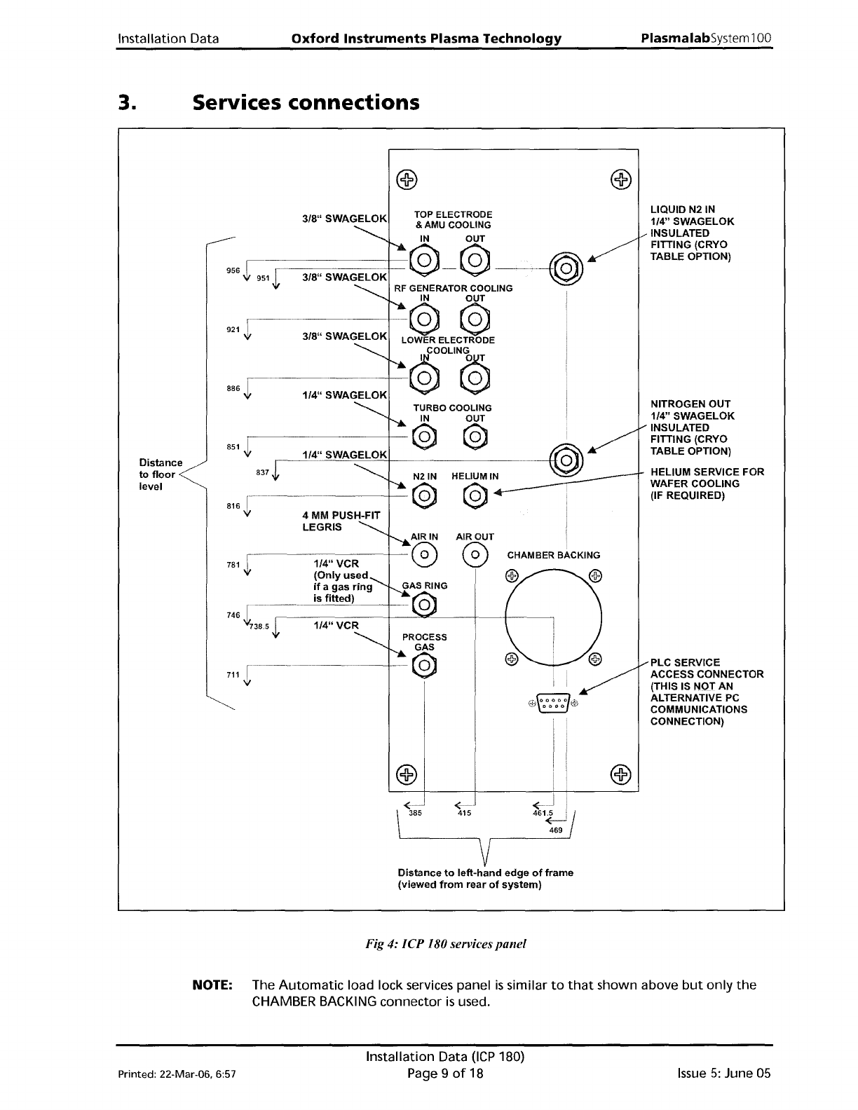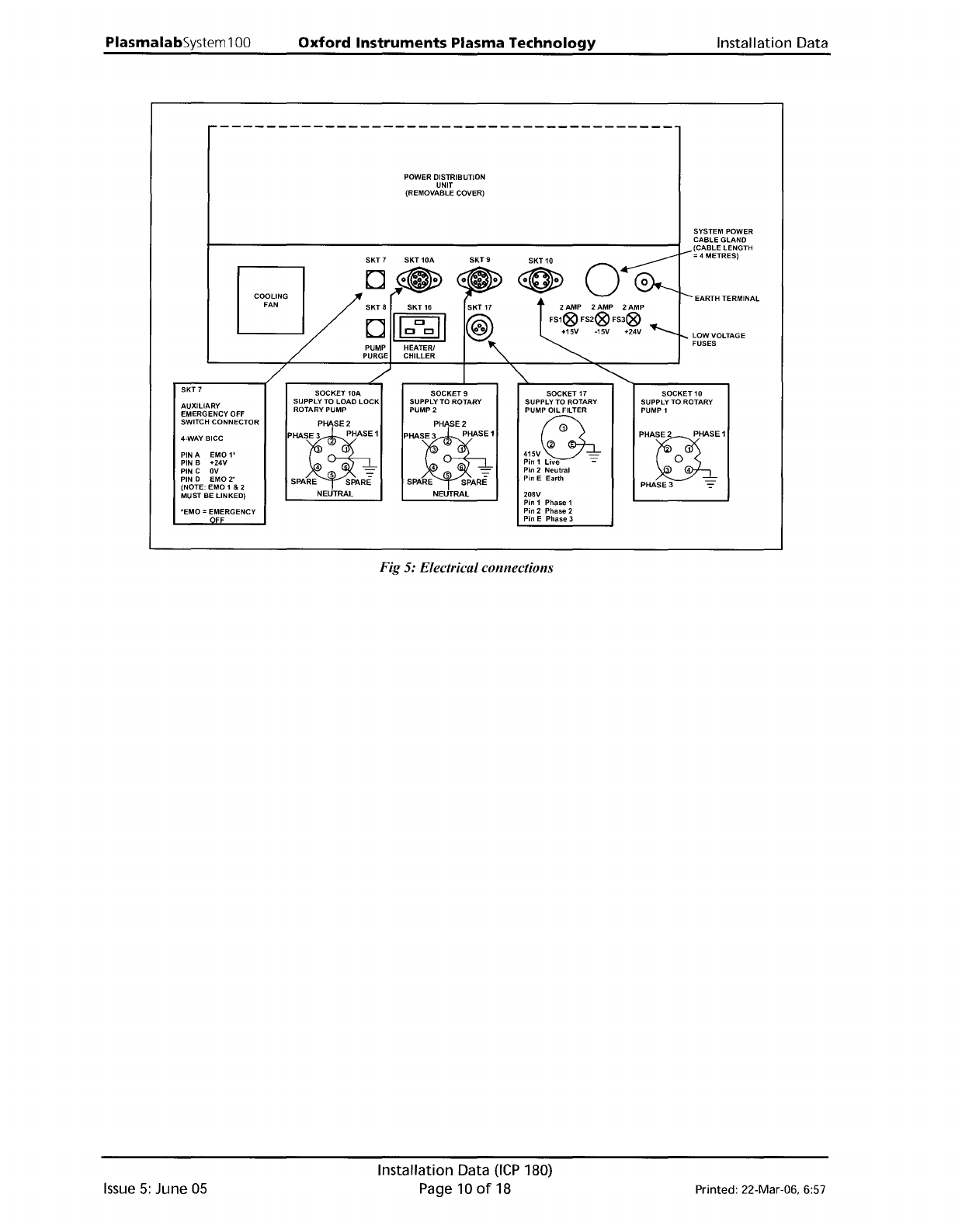 PlasmalabSystem 100 Oxford Instruments Plasma Technology Installation Data POWER DISTRIBUTION UNIT (REMOVABLE COVER) HEATER/ CHILLER SOCKET 9 SUPPLY TO ROTARY PUMP 2 EARTH TERMINAL SYSTEM POWER CABLE GLAND (CABLE LENGTH …