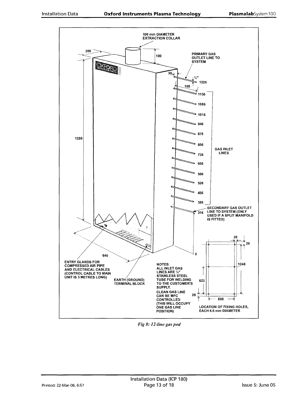 Installation Data Oxford Instruments Plasma Technology PlasmalabSystem 1 00 T" GAS INLET LINES 20 - SECONDARY GAS OUTLET LINE TO SYSTEM (ONLY USED IF A SPLIT MANIFOLD ISFITIED) LOCATION OF FIXING HOLES, EACH 6.6 mm …
